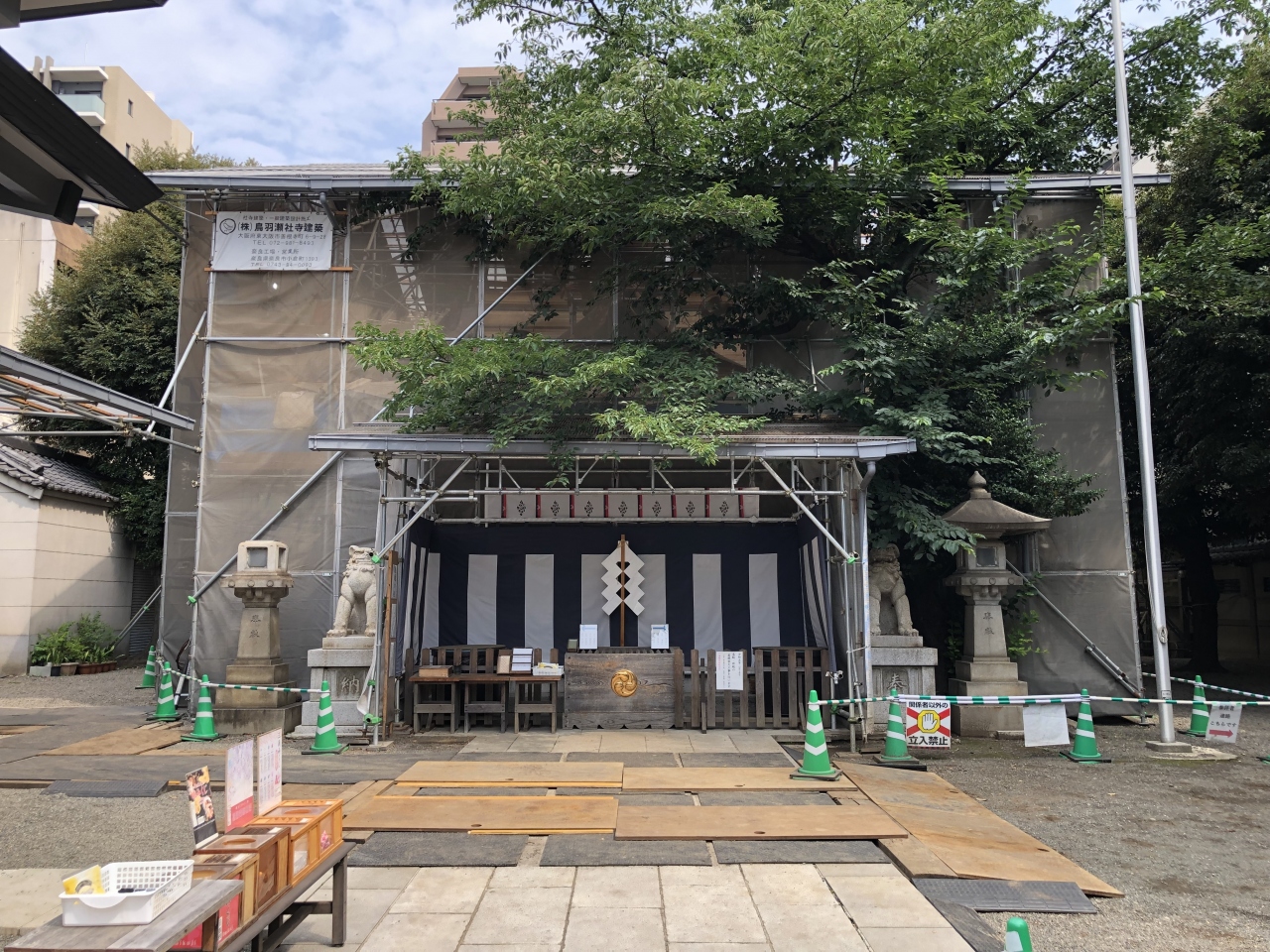 本殿と拝殿の屋根を工事しています