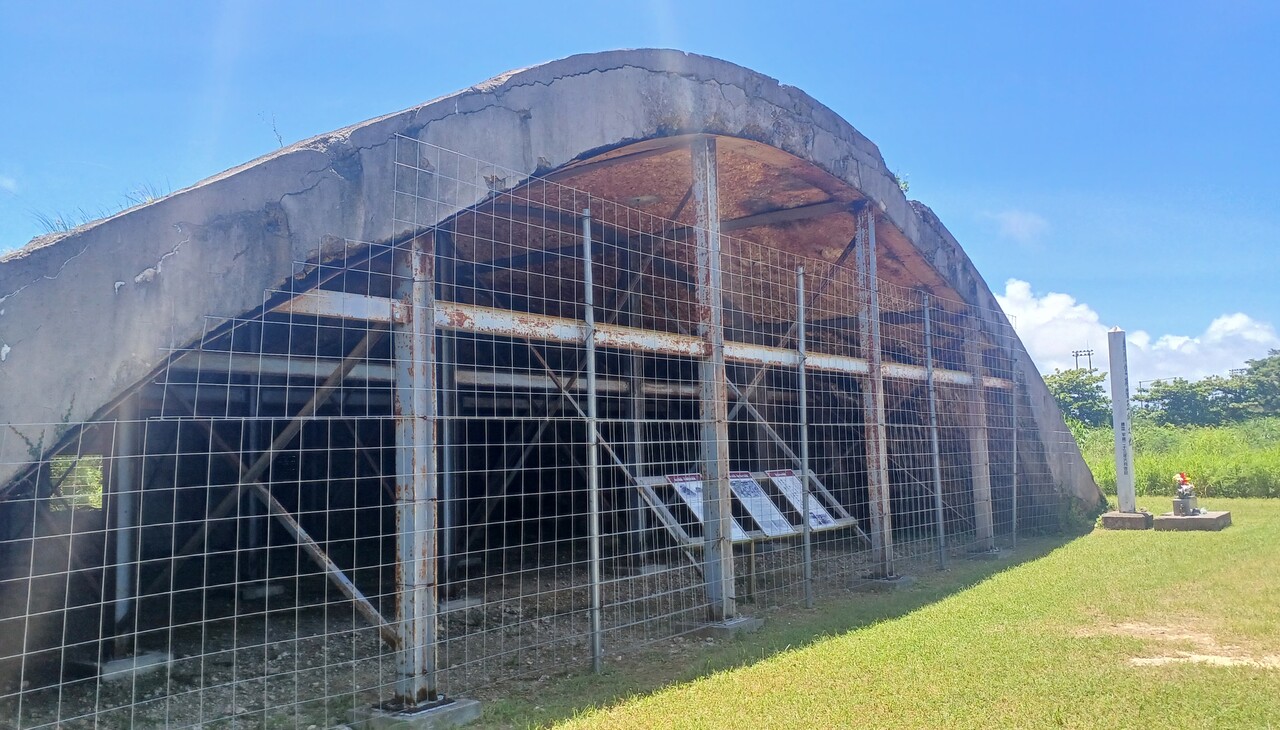 すぐに開けた場所に出て、左手に見えた。適当に車を止めて徒歩で。戦闘飛行機を格納するにしては想像よりも小さくもろそうだった。戦争遺跡。