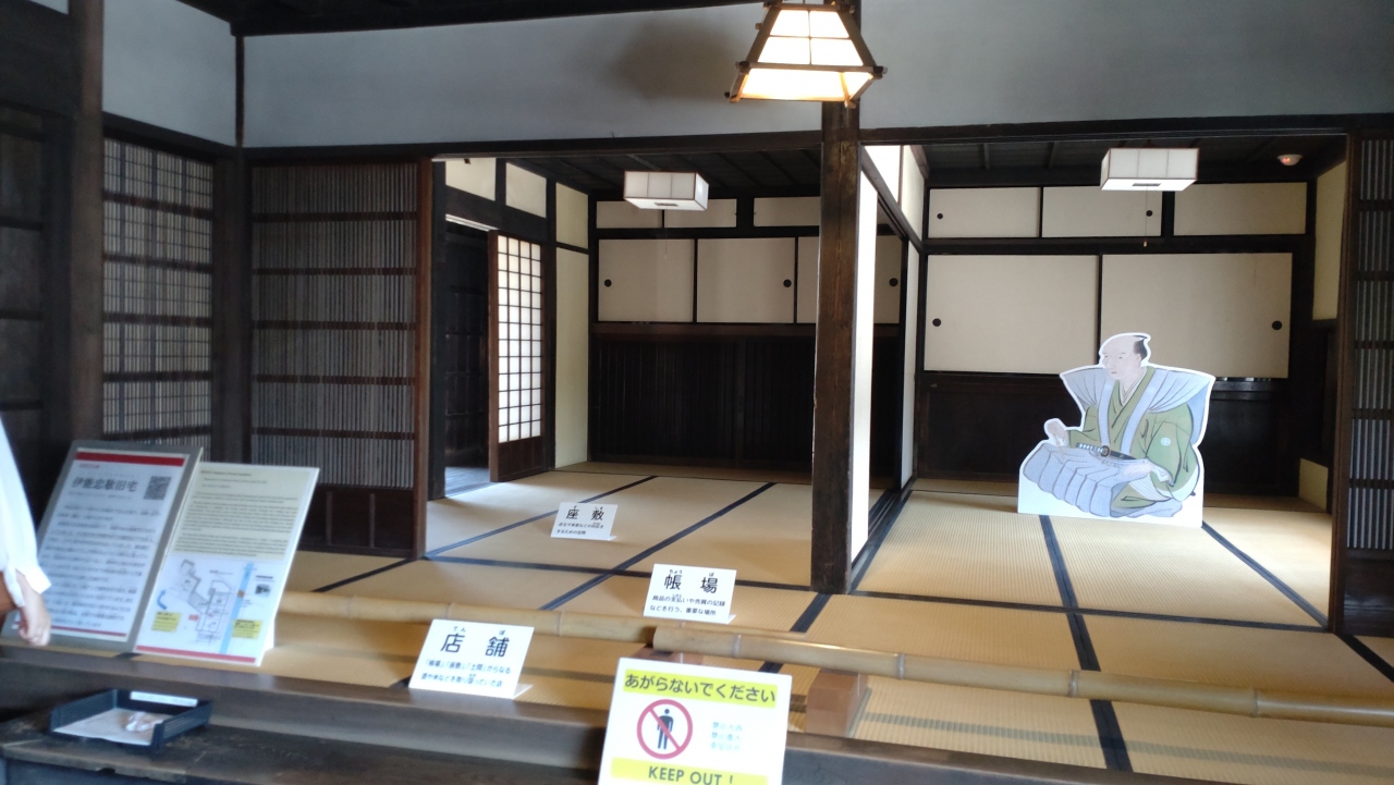 有料の伊能忠敬記念館から小野川に掛かる樋橋(ジャージャー橋)を渡ると旧宅があり、こちらは無料で見学出来ました。平屋づくりの商家の住宅ですが、部屋数もそれなりにありました。敷地も広く伊能忠敬の像もありました。