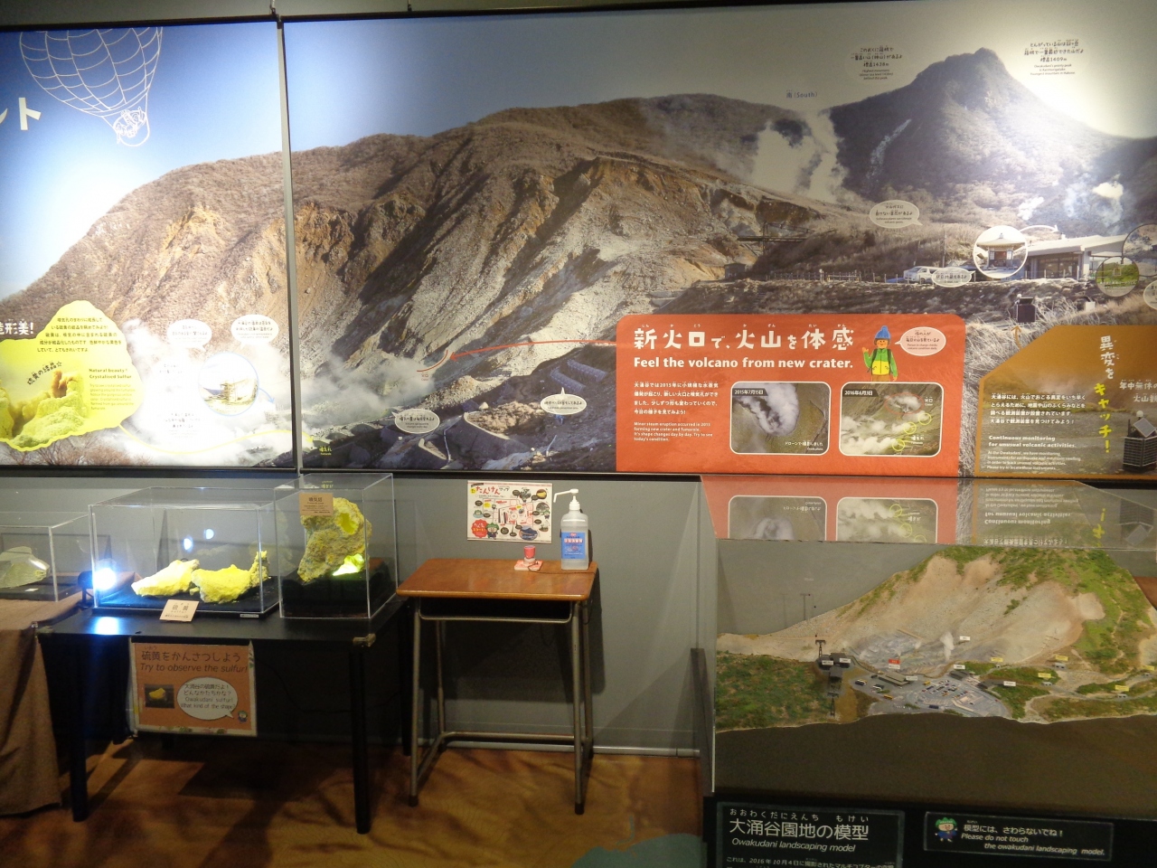 大涌谷くろたまご館の中にある有料施設です.町立の施設なので料金は100円と格安です.大涌谷はとても混雑していますが,その中ではこの施設は比較的空いています.展示品は大涌谷にまつわる岩石や硫黄などですが,箱根の歴史を知るためのジオラマなどがあり,とても勉強になりました.小さな施設ではありますが,料金の価値は十分にあると思います.