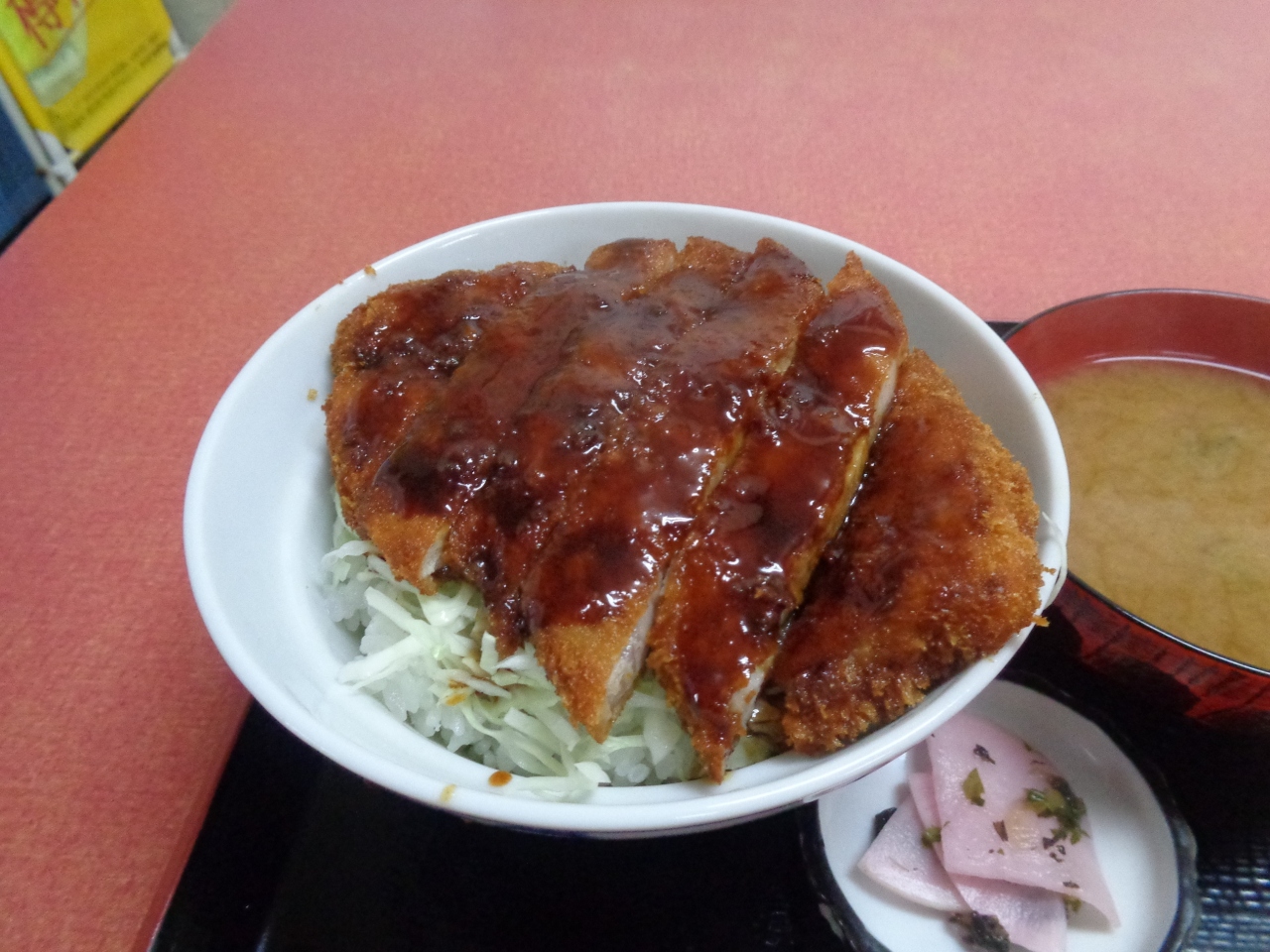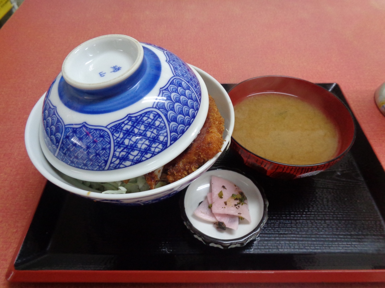 会津若松駅の正面に位置する食堂です.かなり年季が入っている感じがします.壁に掛けてある大きな看板には,創業100年とありますが,店の脇に垂れ下がっている幕には,創業120年と書いてありました.会津若松では定番のソーツカツ丼を頂きましたが,ご飯の上にキャベツを載せ,その上にカツが載っていました.付いているのは味噌汁とダイコンの漬物で,全体的にシンプルな感じでした.