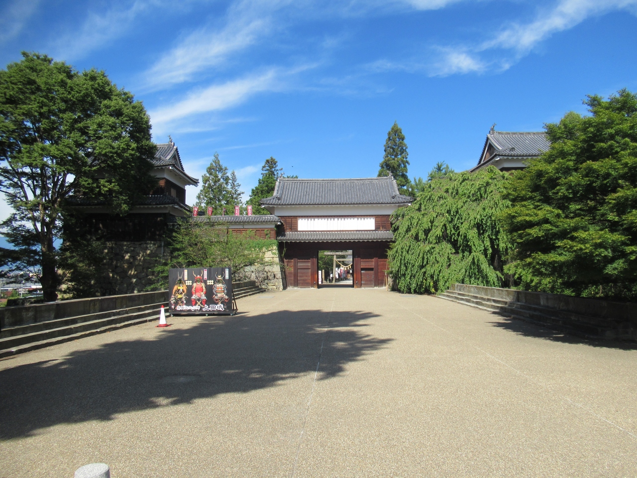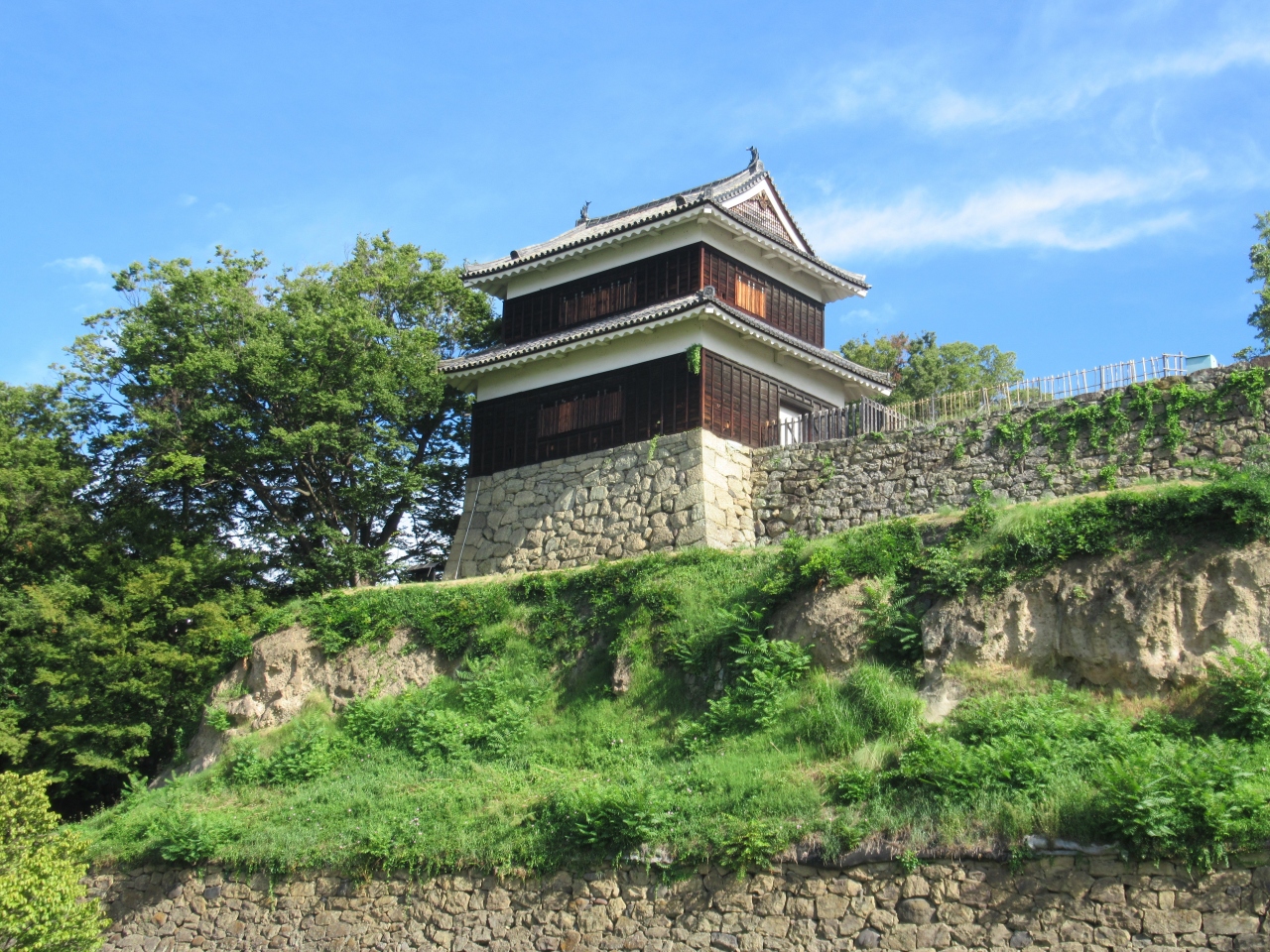 真田昌幸によって築城され、徳川の大軍を2度撃破したことで知られる平城です。残念ながら天守は残っていませんが、江戸時代初期に建てられた西櫓と、昭和になって移築された北櫓と南櫓、平成になって復元された櫓門が城跡らしさを感じさせてくれます。櫓門の石垣には直径3mほどの大きな真田石が使用され、本丸跡の一画には鬼門除けの隅おとしが残っています。現在、本丸跡や堀沿いにはたくさんの桜が植えられ公園として整備されていて、歴史を感じながらの散策が楽しめます。