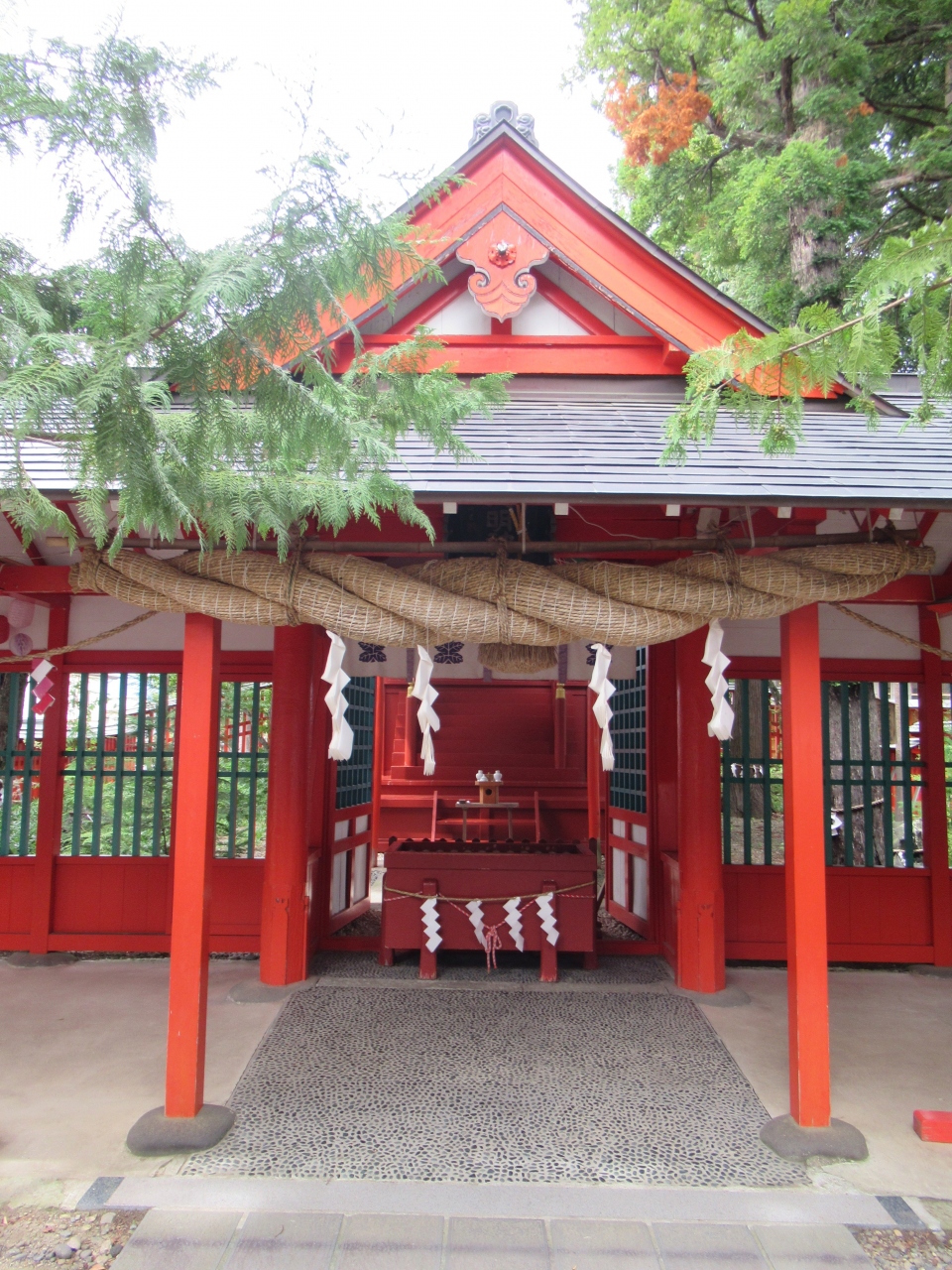 生島足島神社境内に、生島足島神社社殿に向かい合う位置に建っています。1610年に信濃上田藩初代藩主真田信之の寄進で再建されました。諏訪大神が祀られています。生島大神と足島大神に諏訪大神が米粥を煮るなど奉仕をしたと伝えられている故事があると説明板に記されていました。朱漆塗の社殿に彫刻があります。縦に細長く見え、すっきりとした印象です。鮮やかな朱色が特徴です。