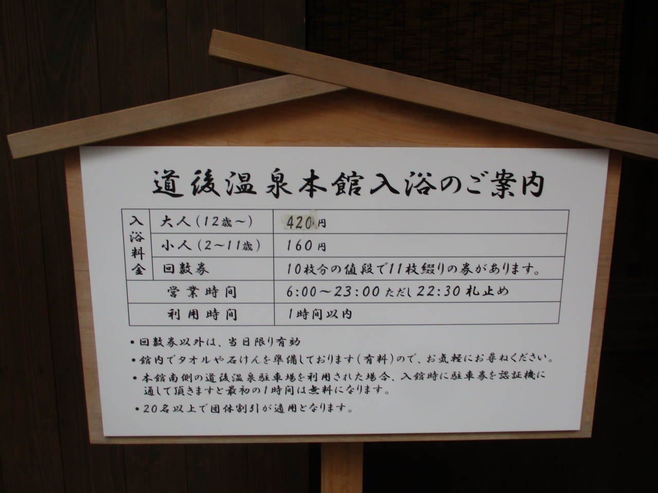 道後温泉本館に宿泊施設はないため、基本的に日帰り入浴専門の施設です。本館には、神の湯、霊の湯という2つのお風呂と3つくらいの休憩室があります。ふりかえると、2004年1月に来たのが最初でしたが、物価高騰の状況で400円台は変わらなかったです。
