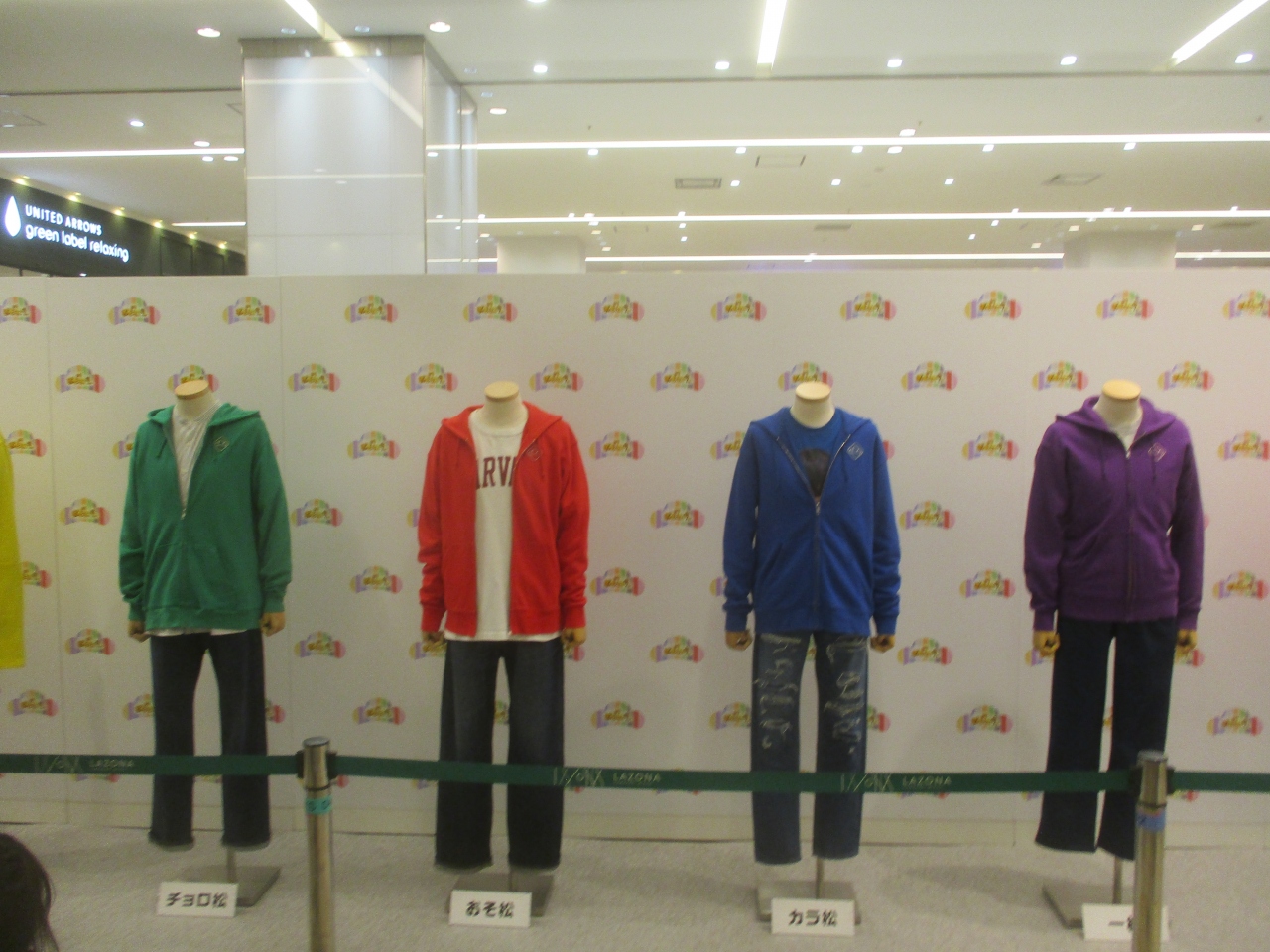 ラゾーナ川崎プラザで人だかりが出来ていて近くに来ると、映画、おそ松さんの公開を記念して、 劇中登場衣装や美術品普通に衣装が並んでいました。スタッフが整理を行いながら撮影されている方たちを整理されていました。アニメの作品しか知らなかったのですが、折角の記念なので撮影をさせていただきました。