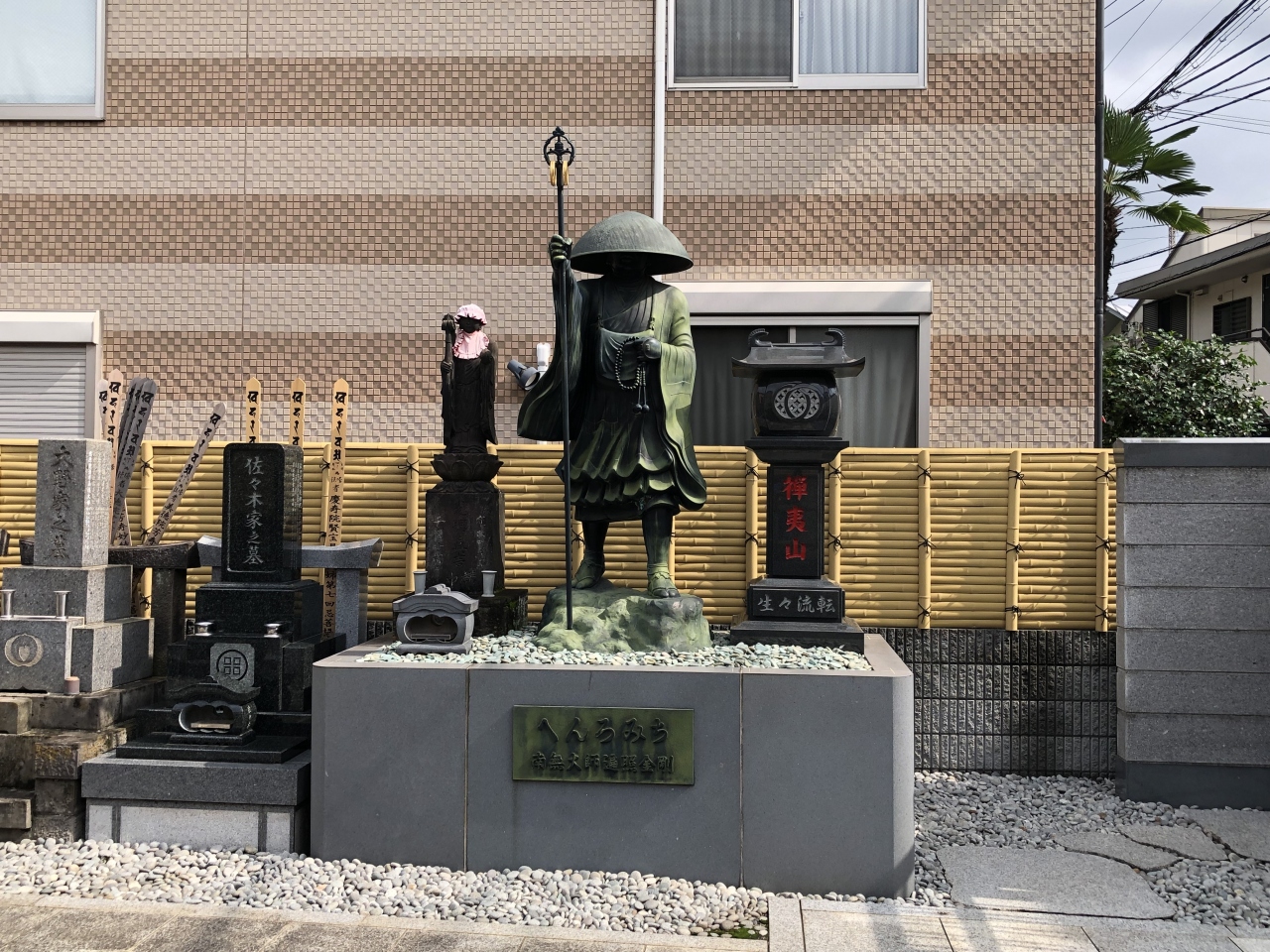 朝の散歩で、JR王子駅から7分ほどの王子稲荷神社を参拝した際に立ち寄りました。稲荷神社から50mほど東十条方向に進んだところに建っています。山門を入ったところに、へんろみちと刻まれた台座の上に数珠を持った僧侶の像が建っているのが特徴です。江戸時代、700年ほどの歴史がある王子神社の別当寺として、将軍の日光詣でや鷹狩りの際の休憩所になっていた歴史を持つ寺です。