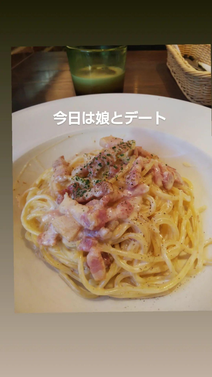3歳娘にはキッズポテトベーコン、私はカルボナーラのランチセット。