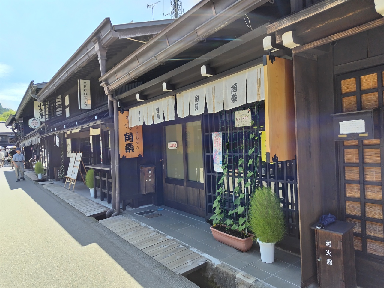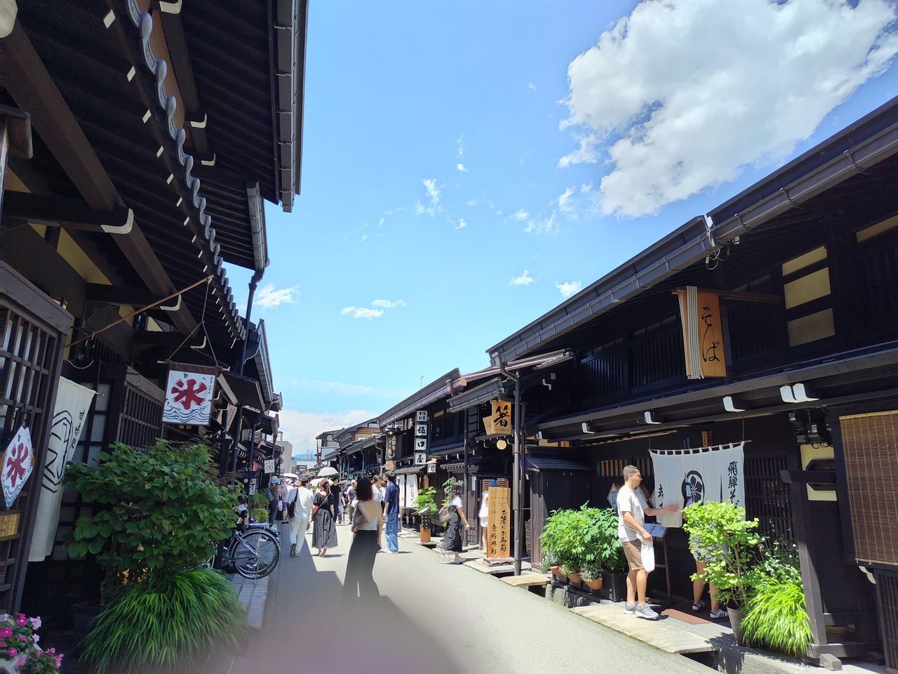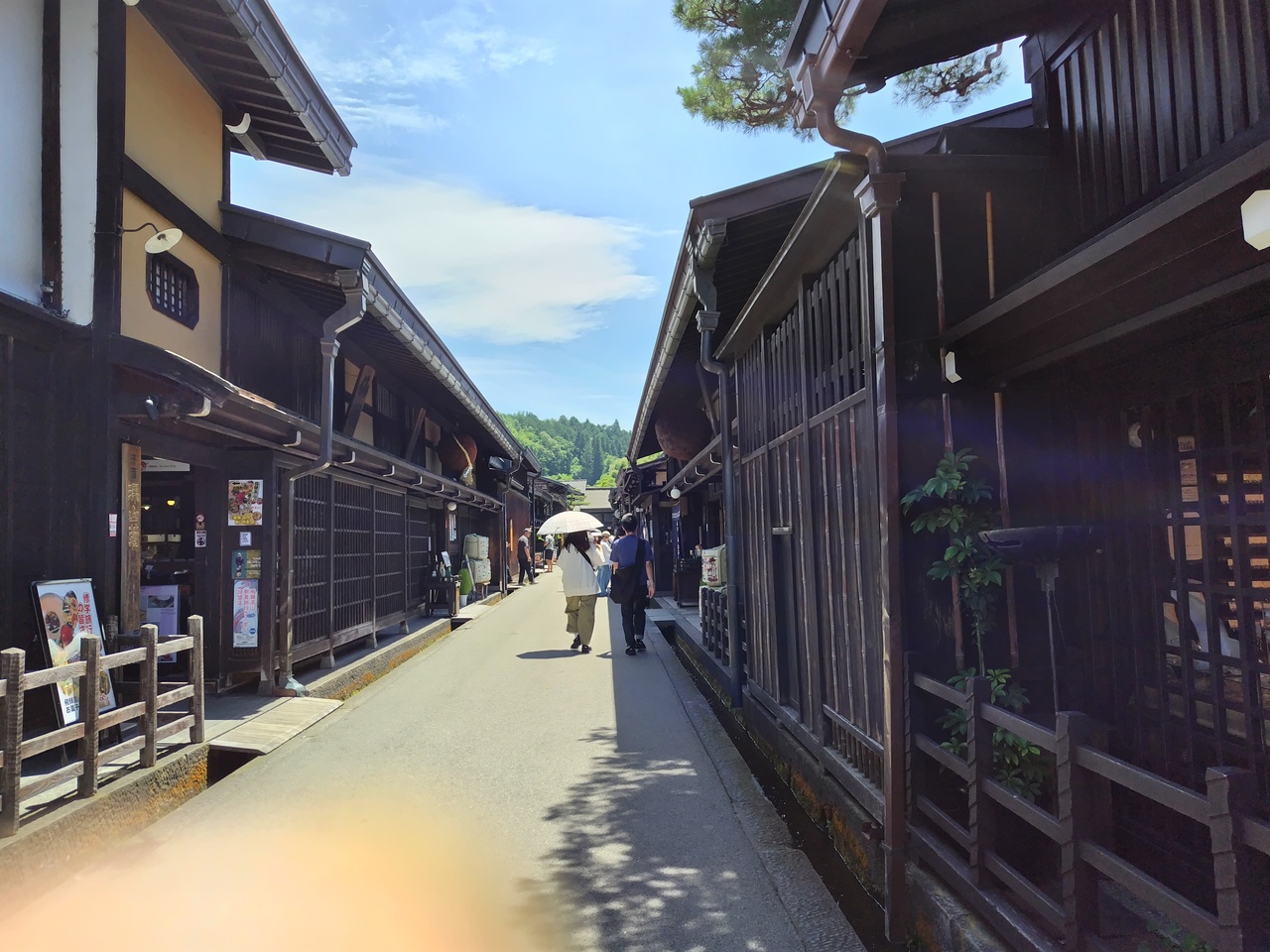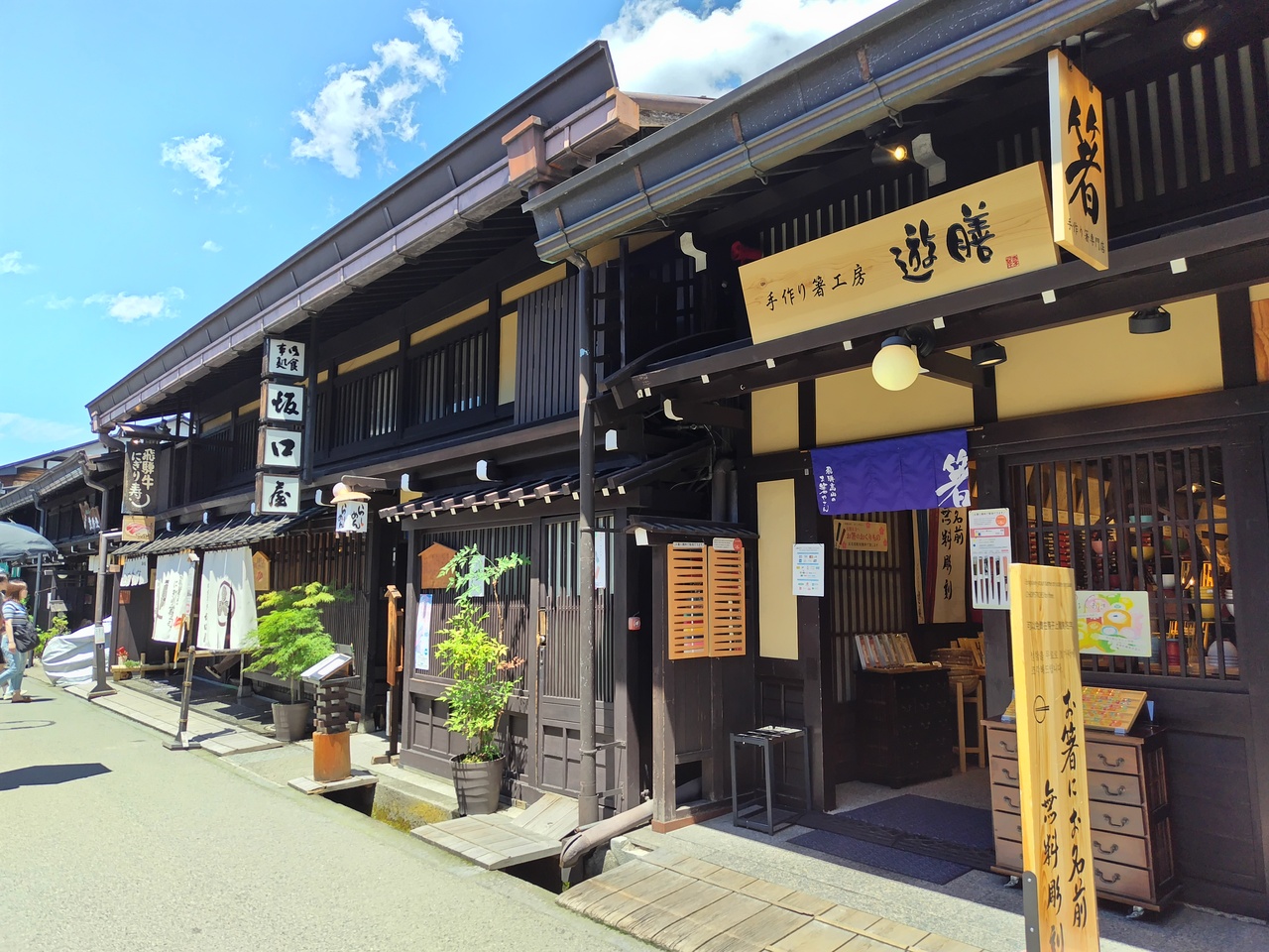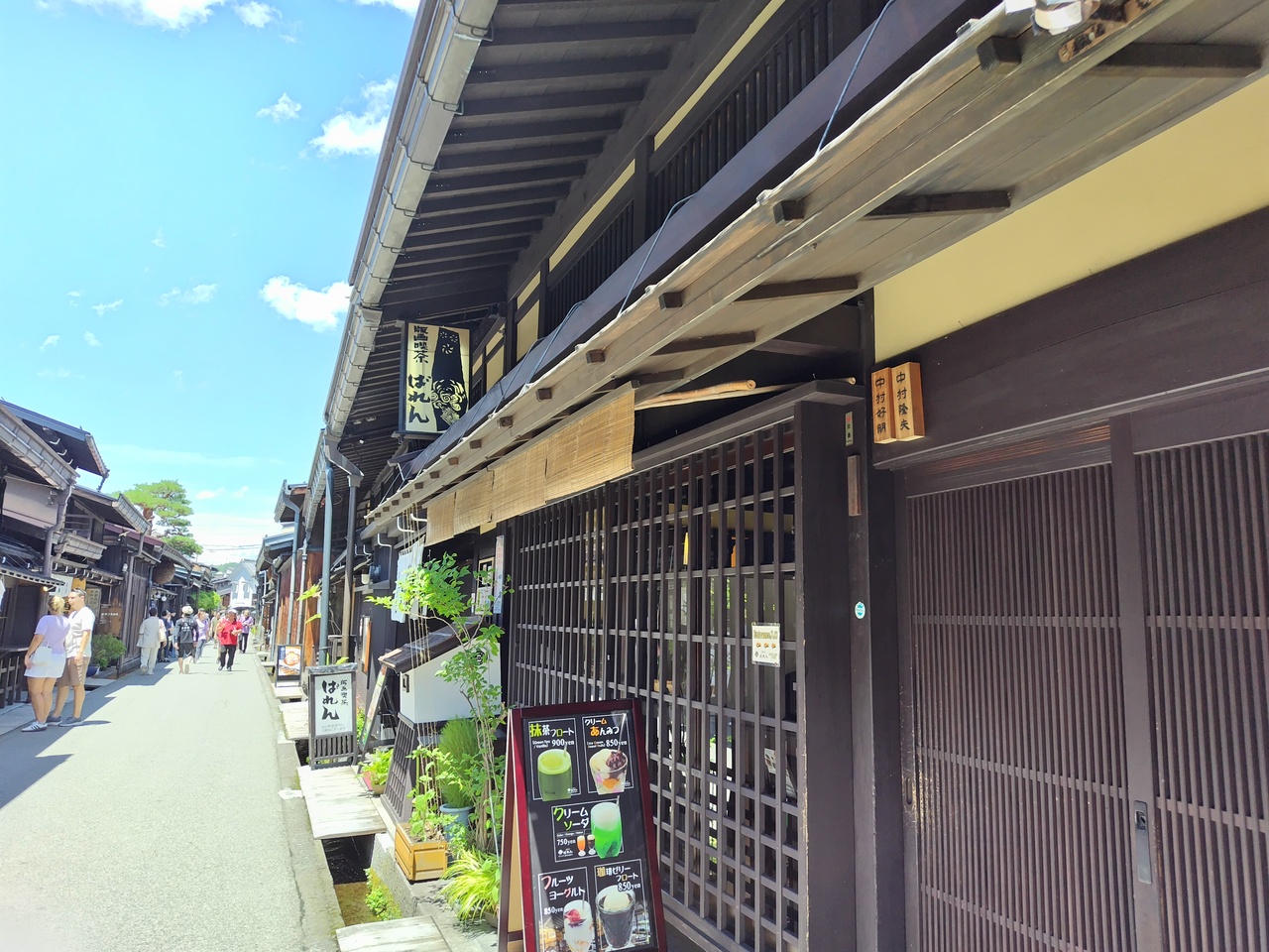 高山観光で人気の場所。以前からある造り酒屋や民芸品店など数店を除き新たにできた店舗がとても多くおしゃれになった印象です。