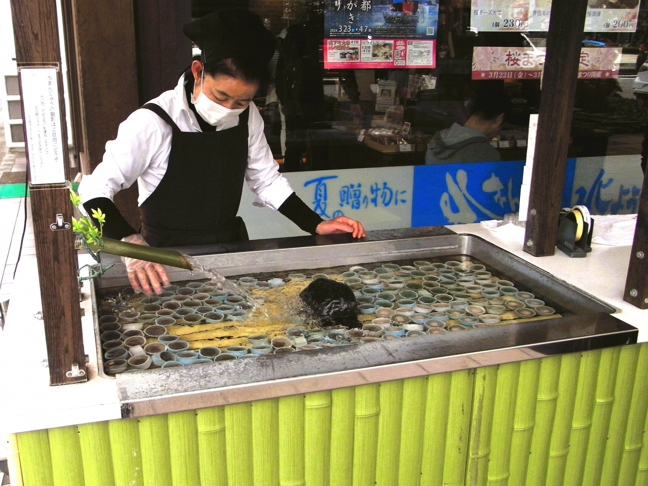 水の都大垣の夏の風物詩とも言われる老舗和菓子店「金蝶園総本家 大垣駅前本店」の水まんじゅうの店頭自演販売です。