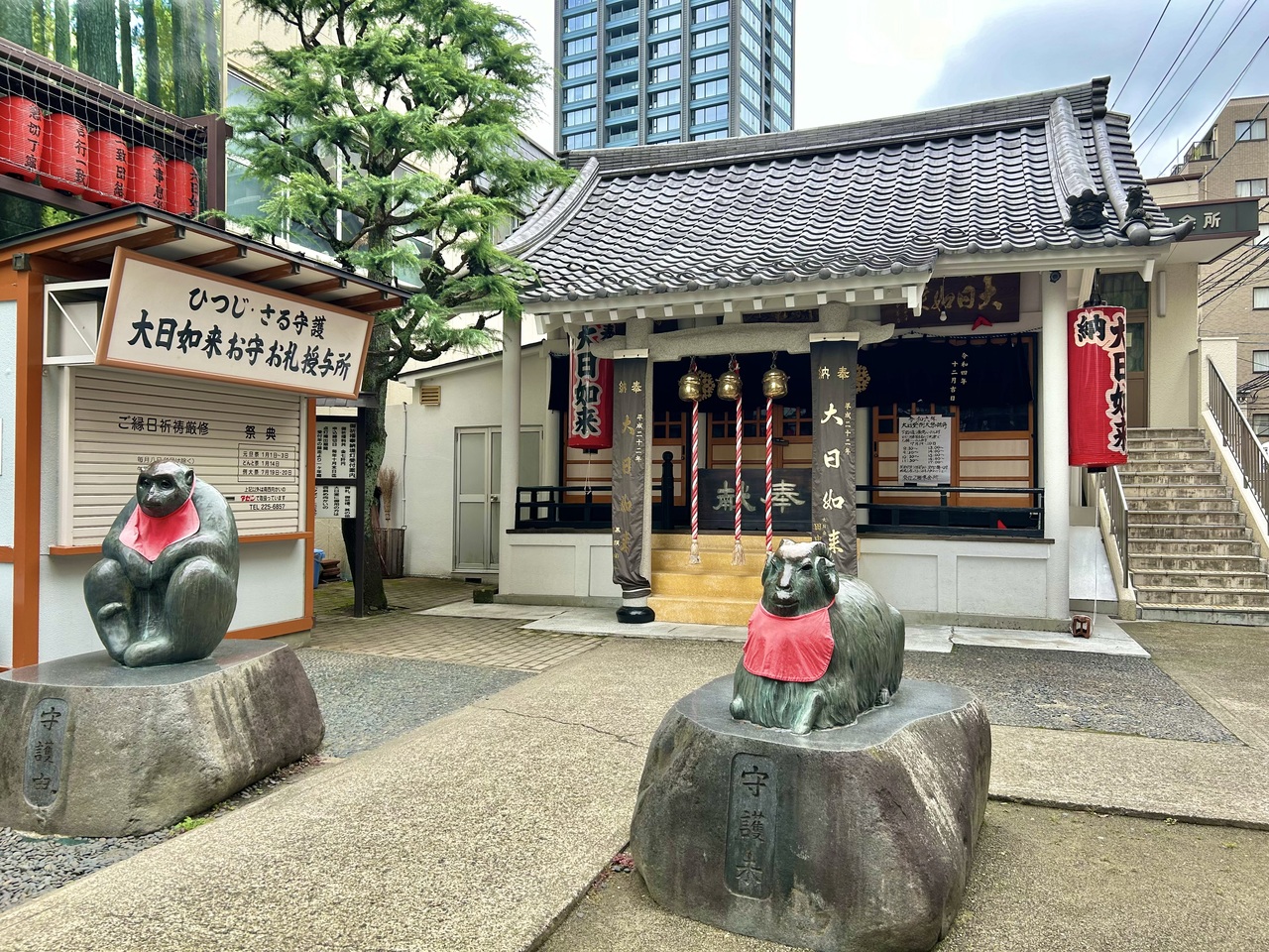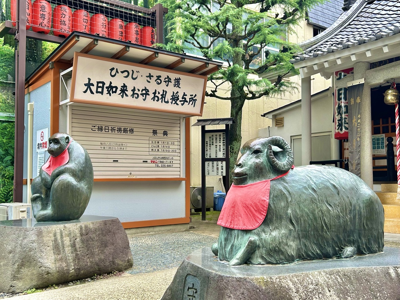 ひつじ・さる歳生まれの方の守本尊とのことで、ひつじとさるの像が祭られています。