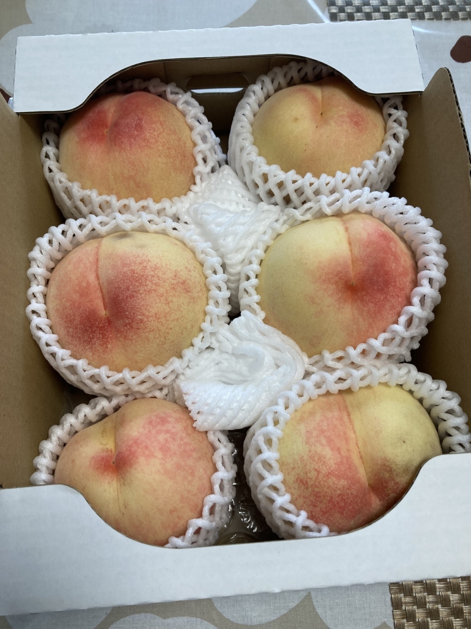 レジには箱入りの桃も置いてあって、傷あり家庭用の桃が1080円で買えました。