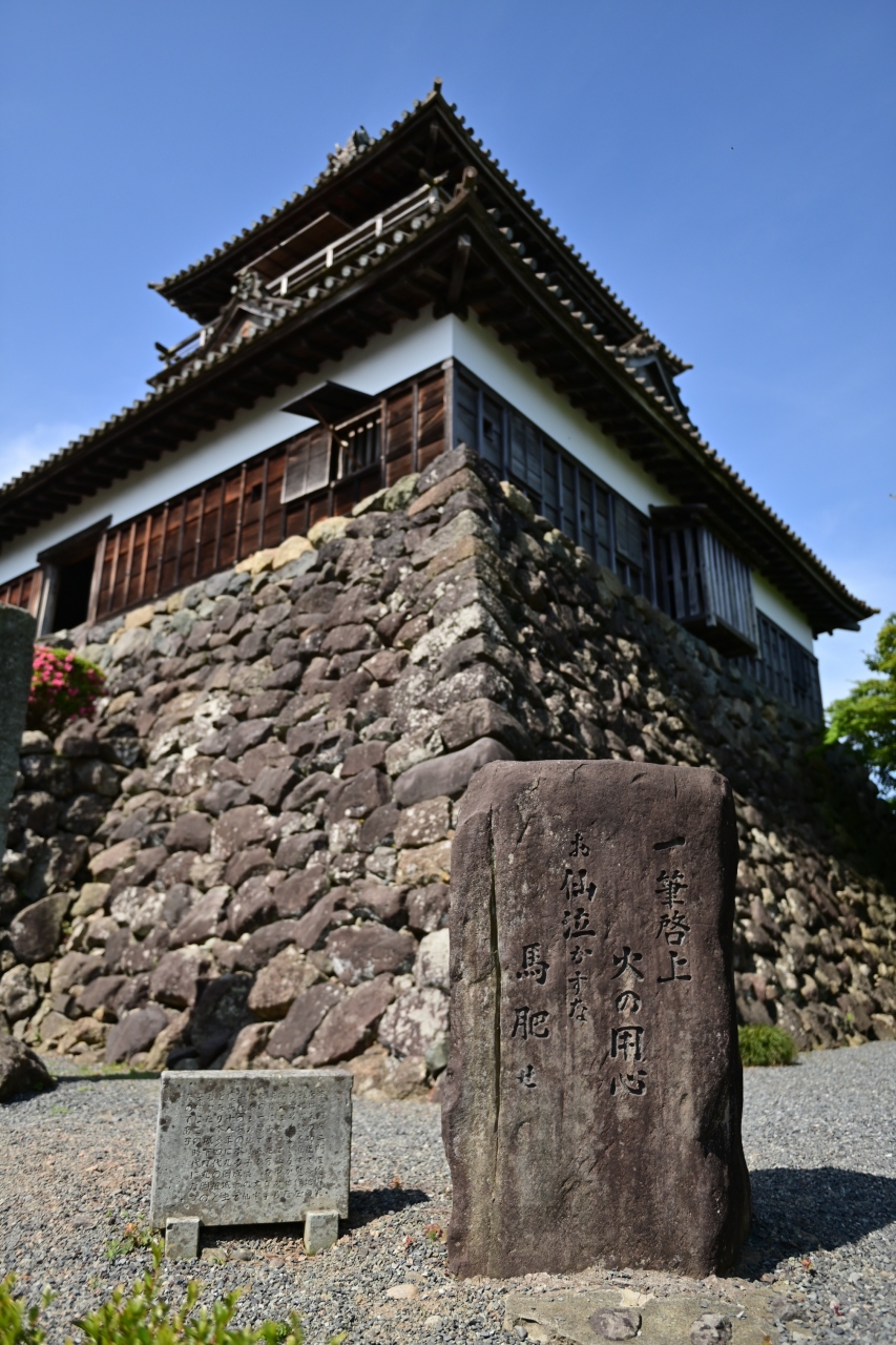 丸岡城天守閣の入り口にある碑だ。「火の用心 お仙泣かすな 馬肥やせ」。長らく「お仙」とは女児のことだと思っていたが、嫡男仙千代のことだとこの地に来て初めて知った。仙千代は後に丸岡城主となった本多成重で、その縁で石碑がこの地に建てられたのだろう。この手紙の魅力は俳句のようなリズムのよさだ。気をつけるべきものを端的にリズムよく表現したことでこの手紙は後世に残った。