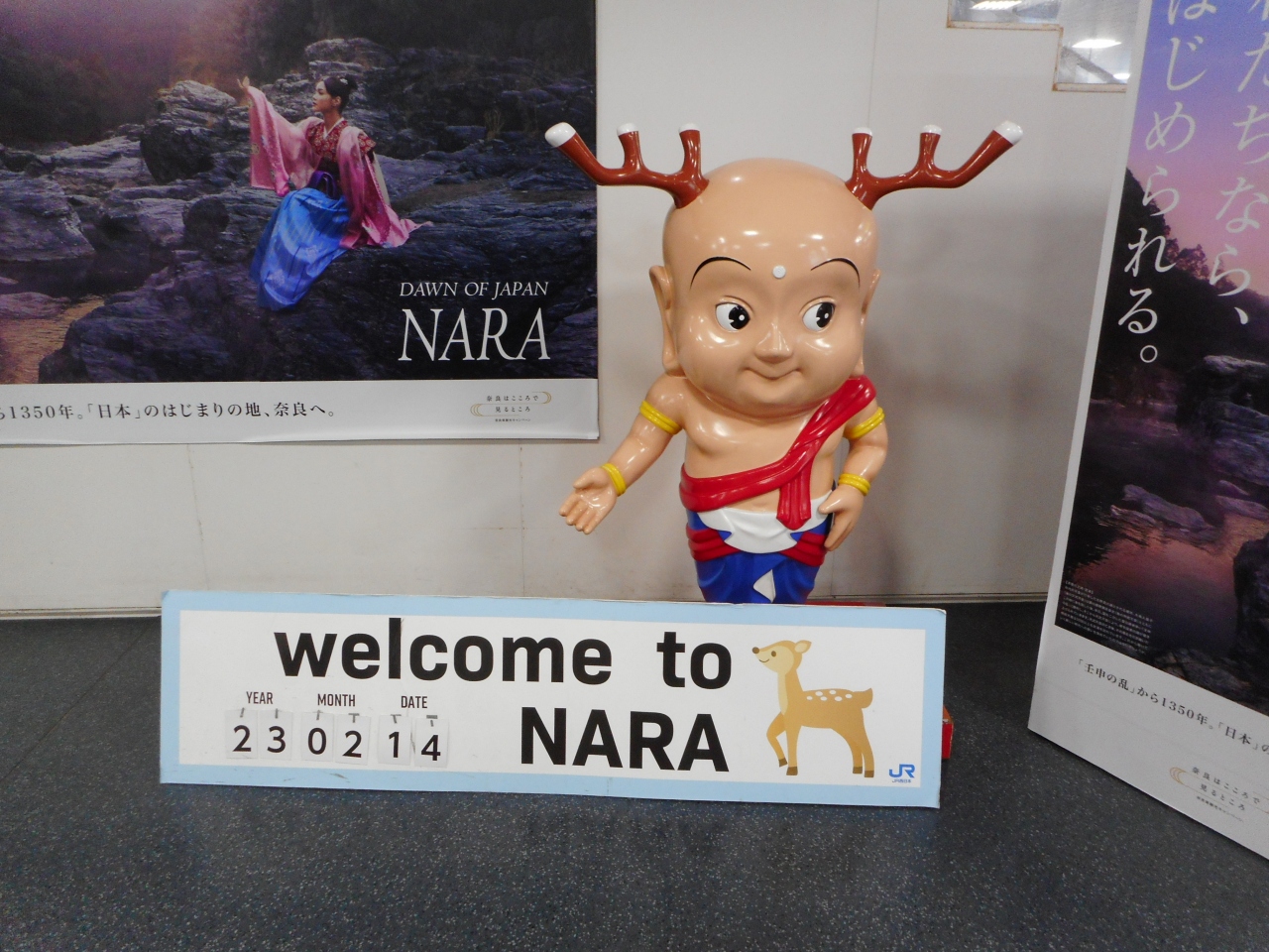 京都から新幹線で奈良駅に着き京都からみやこ路快速で奈良駅に着きました。JR奈良駅で奈良のマスコットのせんとれくんがお出迎えしてくれました。奈良にはJR奈良駅と近鉄奈良駅があります。奈良駅構内にはお土産ショップやスーパーもあり便利でした。