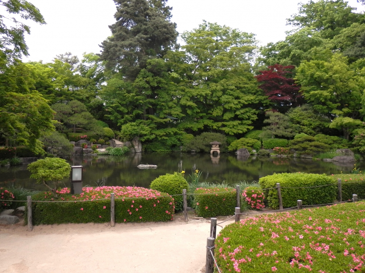 池を中心とした日本庭園は手入れが好くて春から初夏は青紅葉が眩しくて~、秋に成れば色付く紅葉が重なり合って燃えるような鮮やかさに成るそうです。