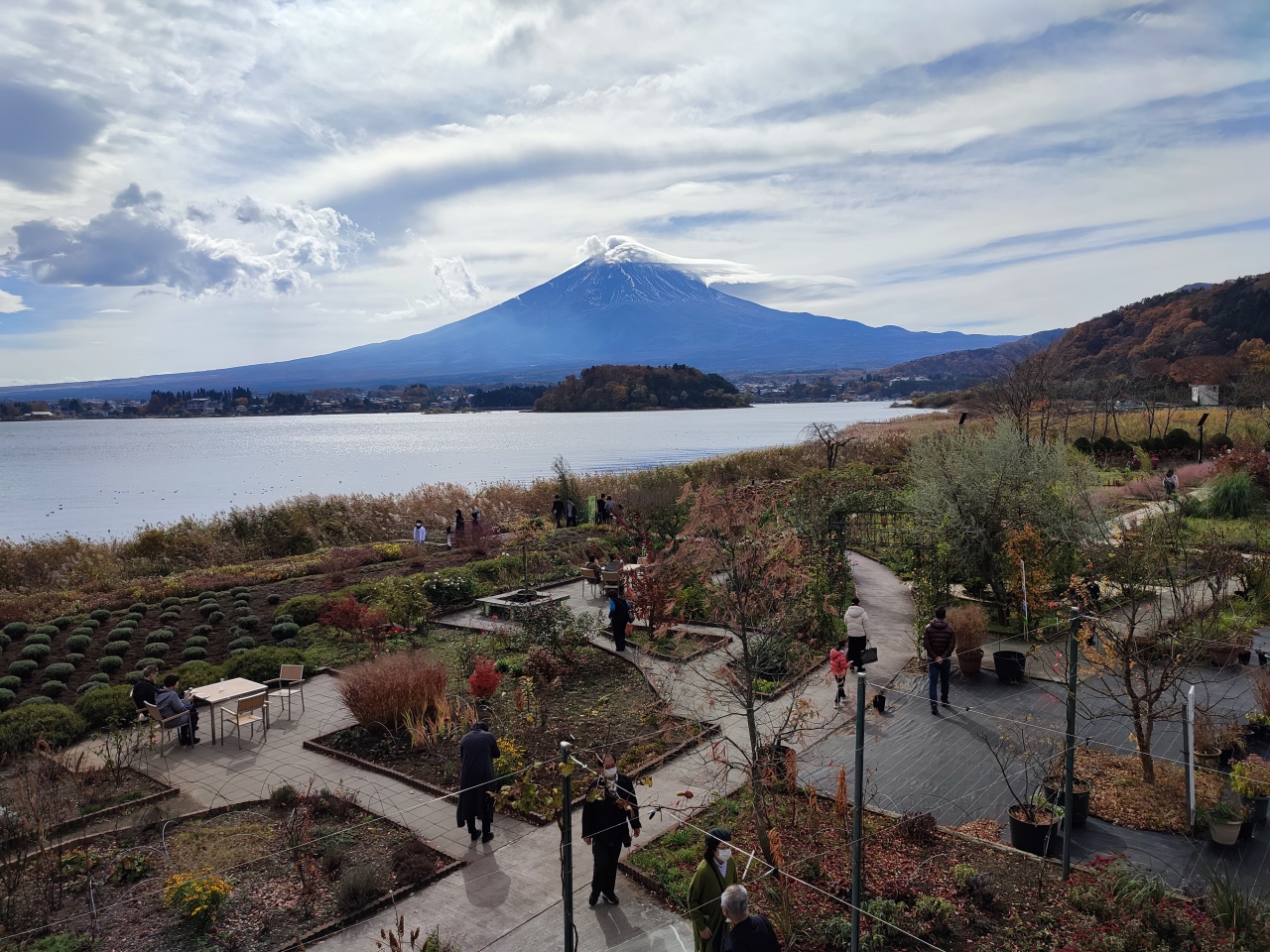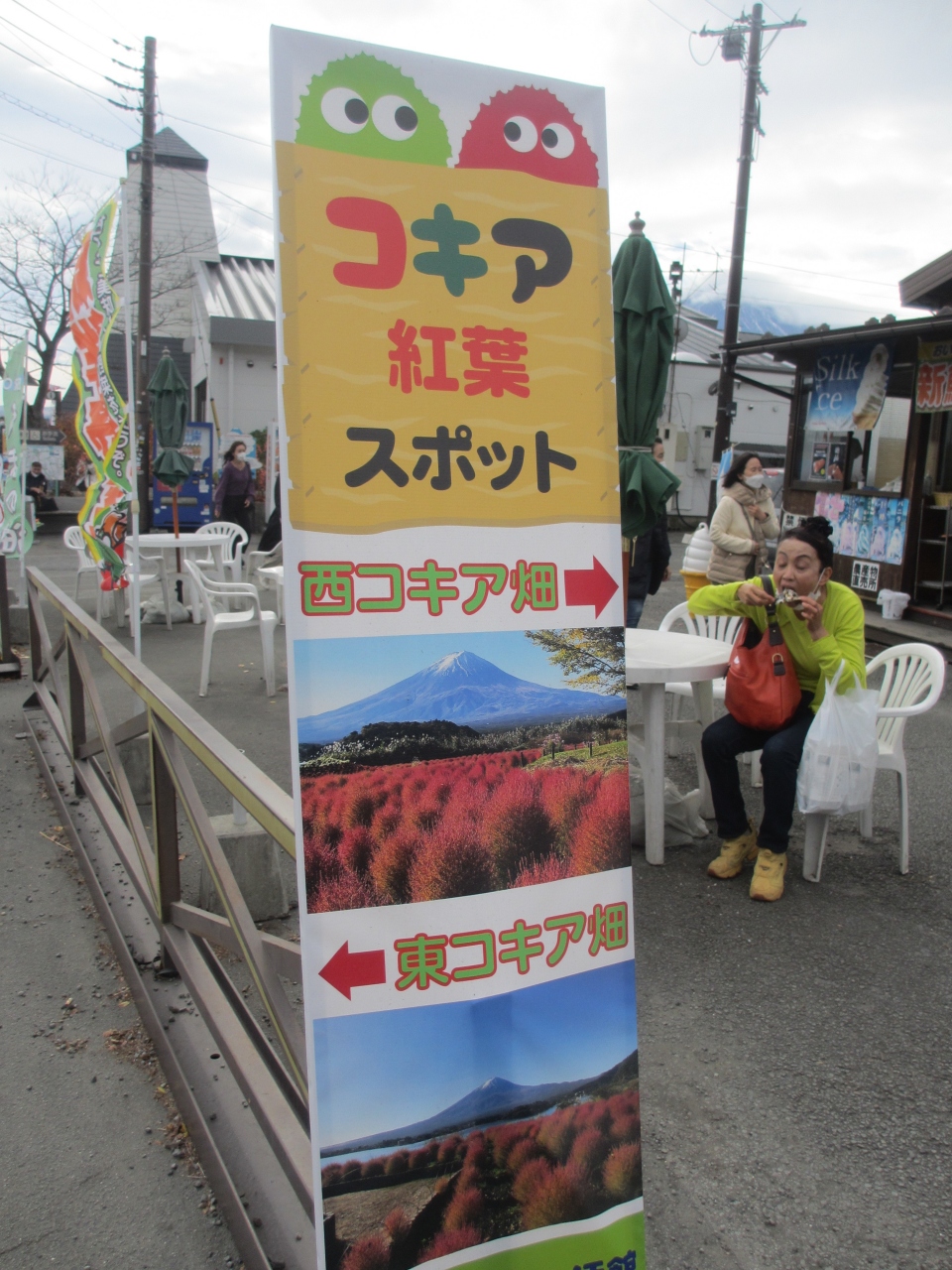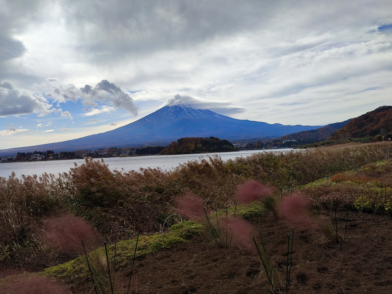 コキア畑越しの湖と富士山のショットが撮れて満足。