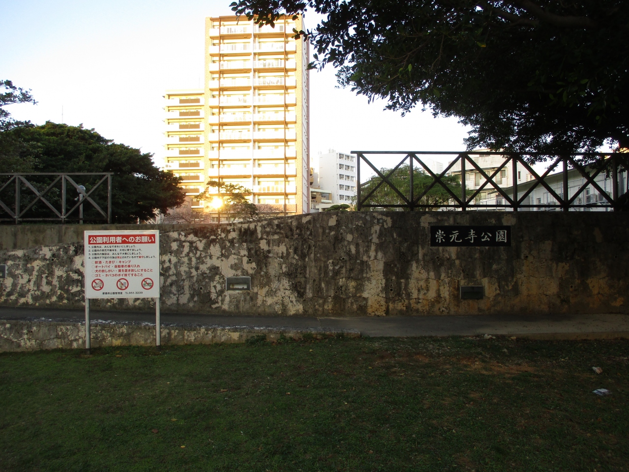 旧崇元寺石門の残された石門は国の重要文化財として指定され、基壇部分は公園として整備されていました。アーチをくぐり、中へと足を踏み入れると、立派なガジュマルの木が出迎えてくれました。南国らしい雰囲気の公園に特別な門がありました。