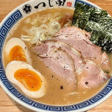 福岡空港国内線ターミナルの3階にあるラーメン滑走路(という名前のラーメン屋街)にあるつけ麺と家系風のラーメン店。ラーメン滑走路には10件ほどのラーメン屋があって昼時にはどこも並んでいるほどの賑わいなのですが、店によって食券を買ってから並ぶところと並んで順番が来てから食券を買うところがあるので、注意。