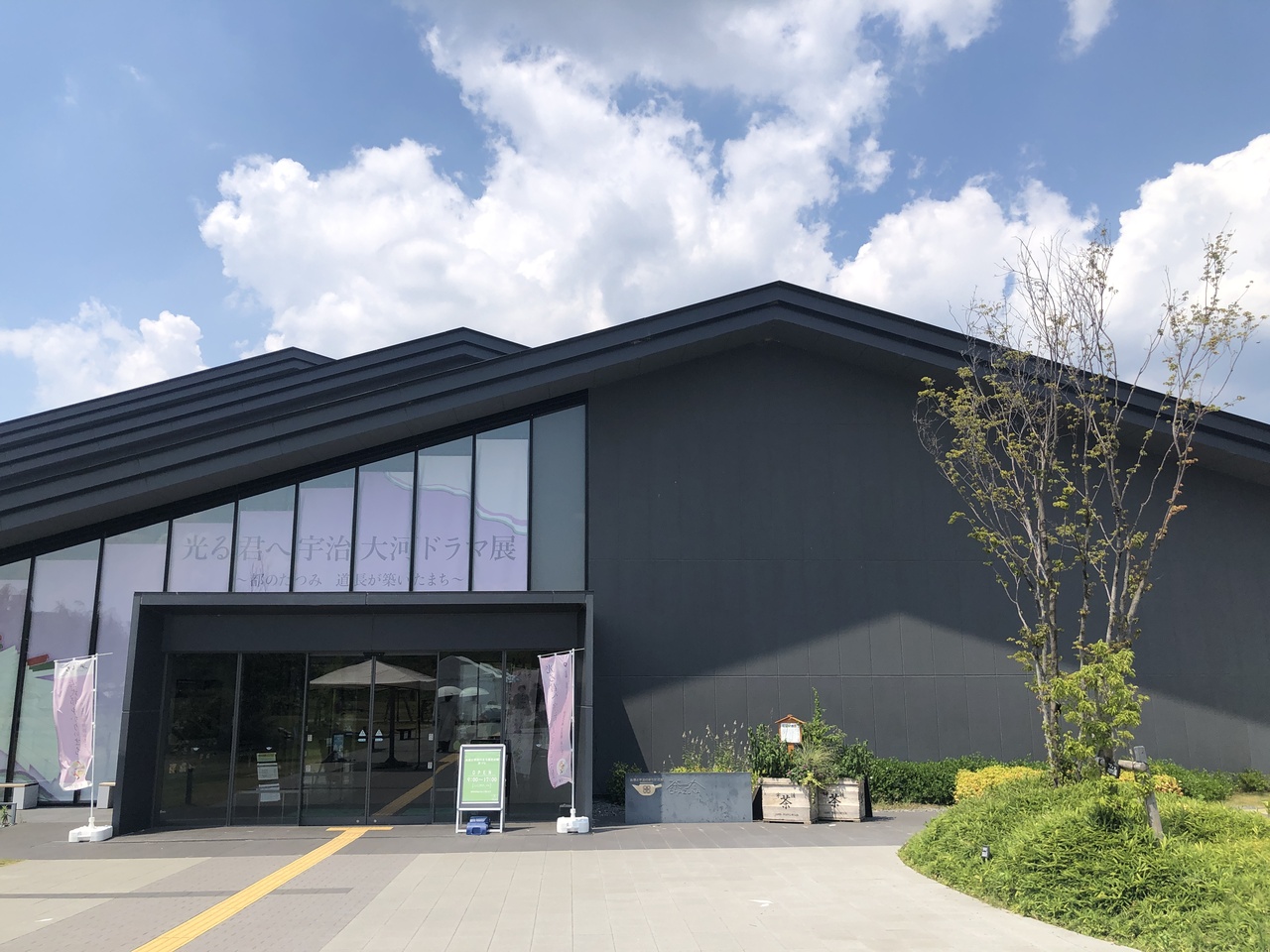 大河ドラマ「光る君へ」展を見るために行きました。2階のスペースが展示会場でした。1階は、ワークショップの部屋やお土産物屋、カフェなどがありました。