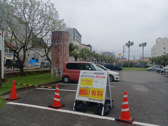 2023.1.4に看板が立ち、南側駐車場も有料250円/回となり、両側共に車中泊禁止と表示された。