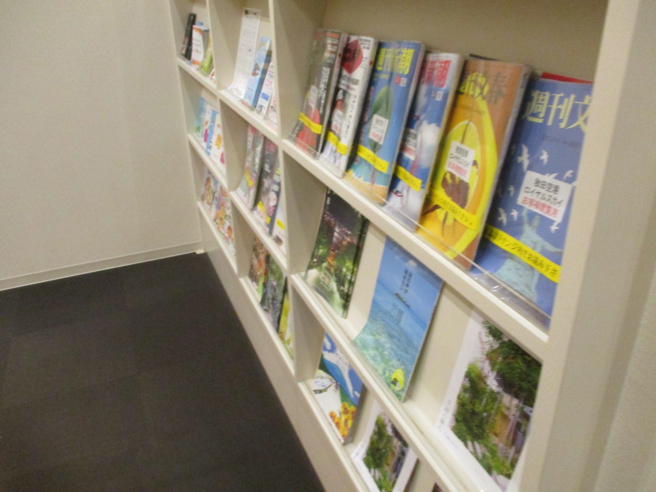 ビジネスマンの利用が多いラウンジなので、新聞、経済新聞、スポーツ新聞など複数の種類が置いてありました。週刊誌、パンフレットなども置いてあり、メーカーで入れたコーヒーを飲み、新聞、雑誌を読みながら、搭乗までくつろぎました。