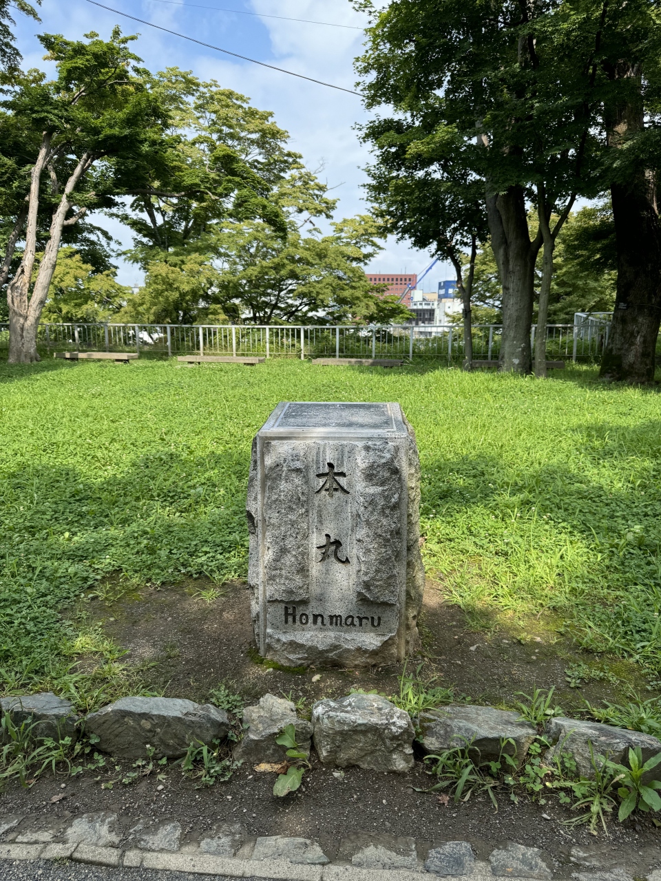 城跡内には、本丸などを表示する石があり、城跡の様子がうかがえます。