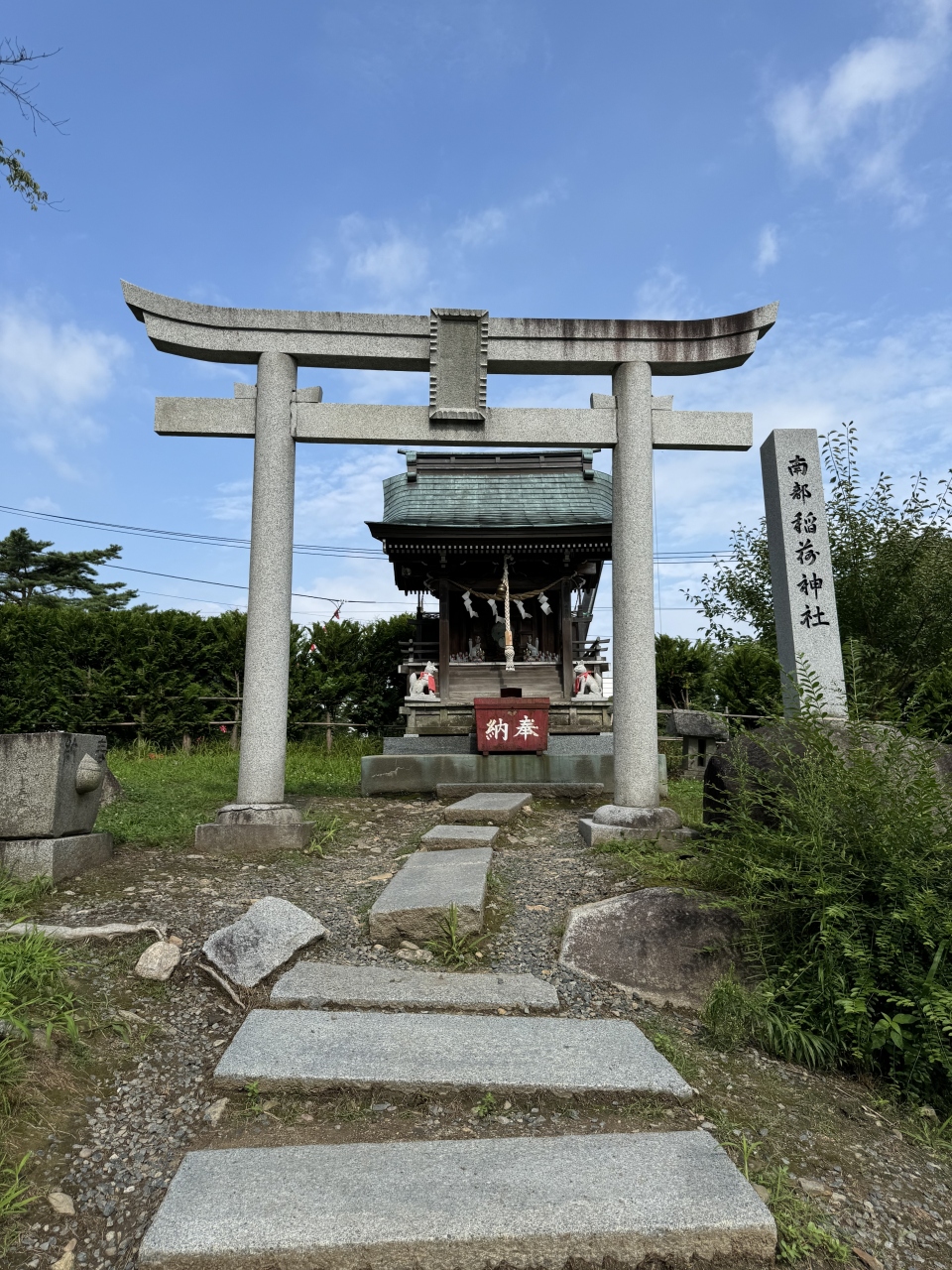 盛岡城跡公園に行くとき、櫻山神社があり立ち寄りました。神社で拝んだ後小さな石を持っていかれた人がいたので、私も石が置いてあるところに行ってみました。