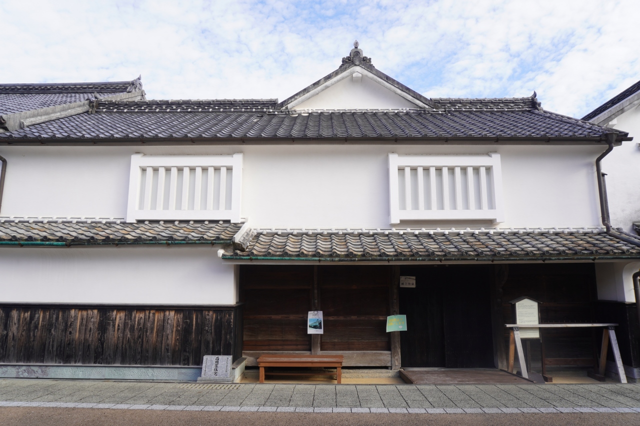 西岡家住宅は、塩田津のメインストリートに建つ塩田津を代表する居蔵建築の建物。内部は土日のみの公開だそうで、この日は外観のみ。ちなみに、西岡家は、江戸中期から回船業や陶器販売で財を成した豪商。建物は、3年の月日をかけて、安政2年(1855)に完成したもの。街道に面した側は、長屋門のような意匠でもあるし、その奥に妻入りの妻の部分がちらりと見えるというもの。つまり、基本は妻入り建物だけど、街道に向かっては防火壁のような構造を作って備えるという建物で、けっこうユニークかと思います。