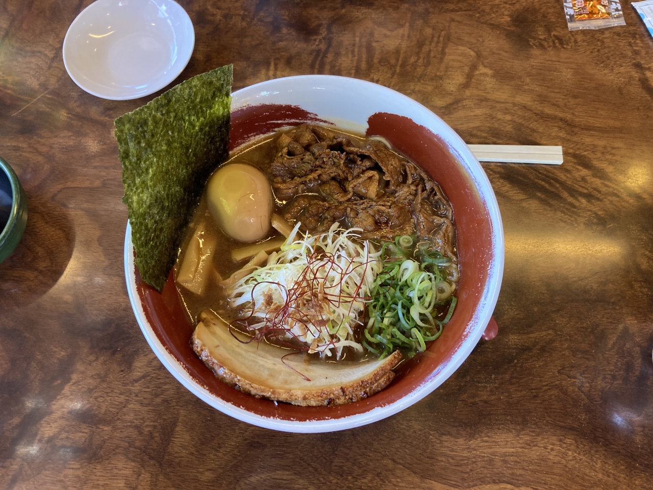 生卵を割って麺やスープと絡めることで、マイルドでクリーミーな味わいが楽しめます。