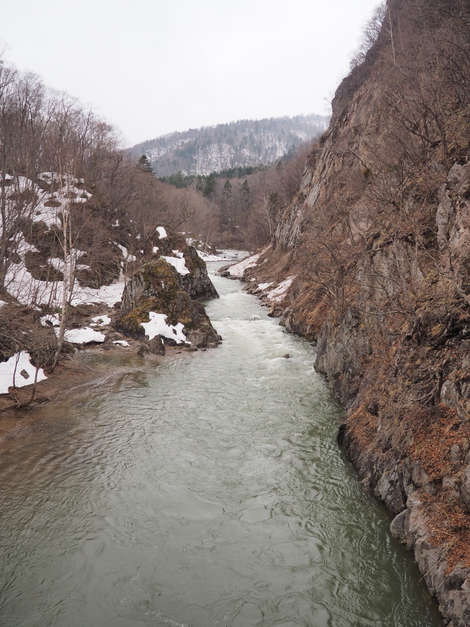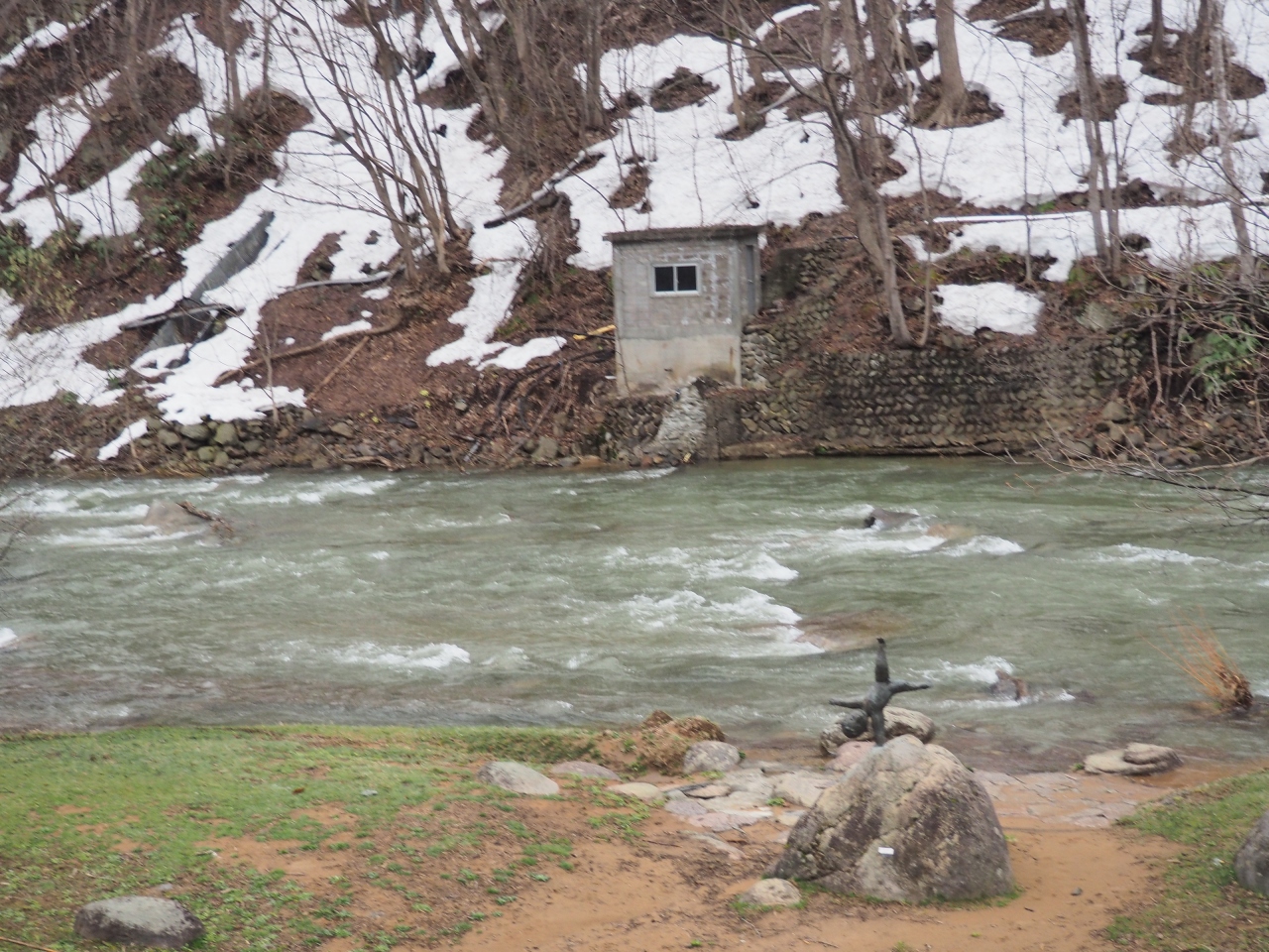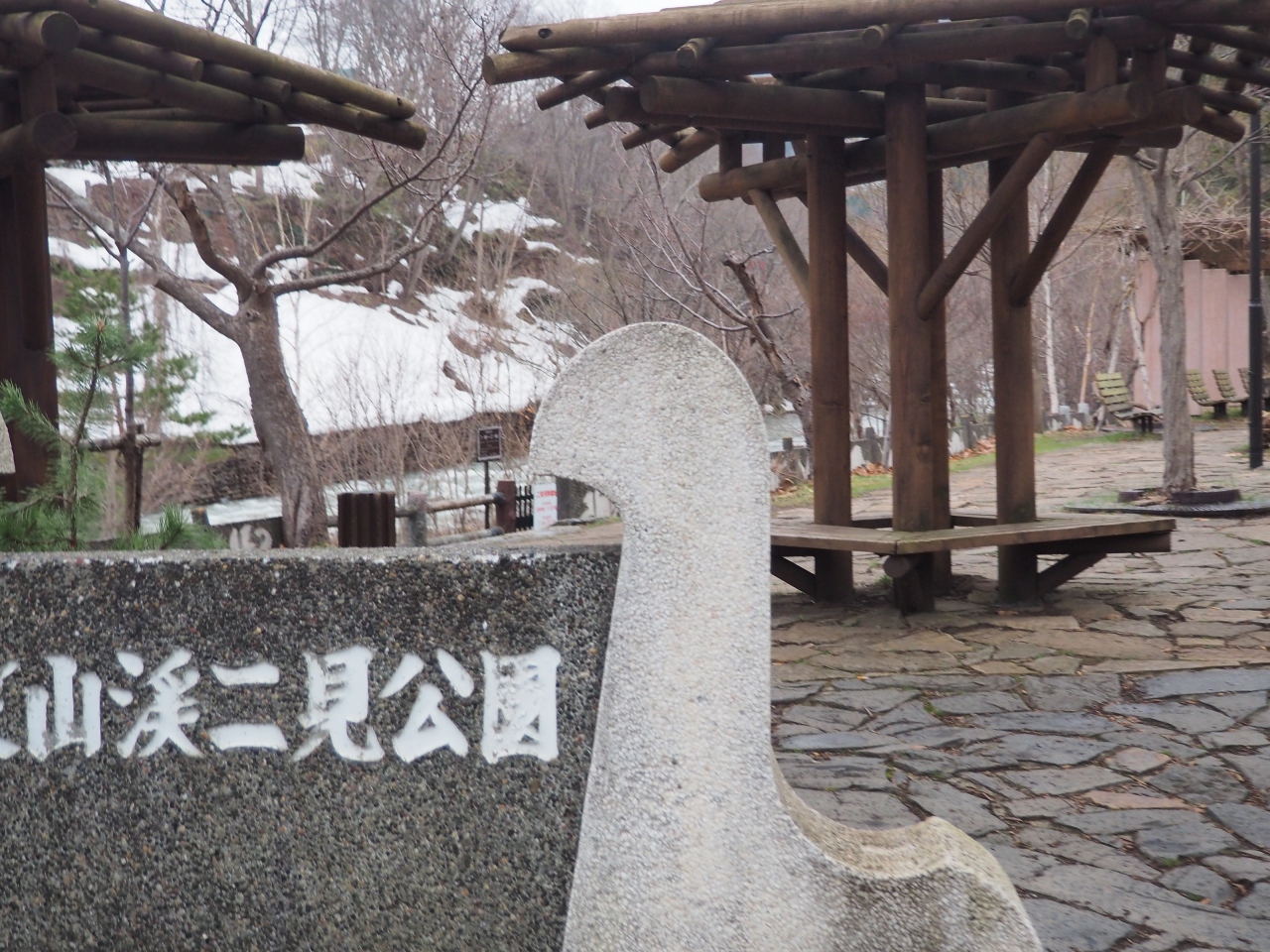 定山渓温泉街の南側、豊平川沿いにある公園。
