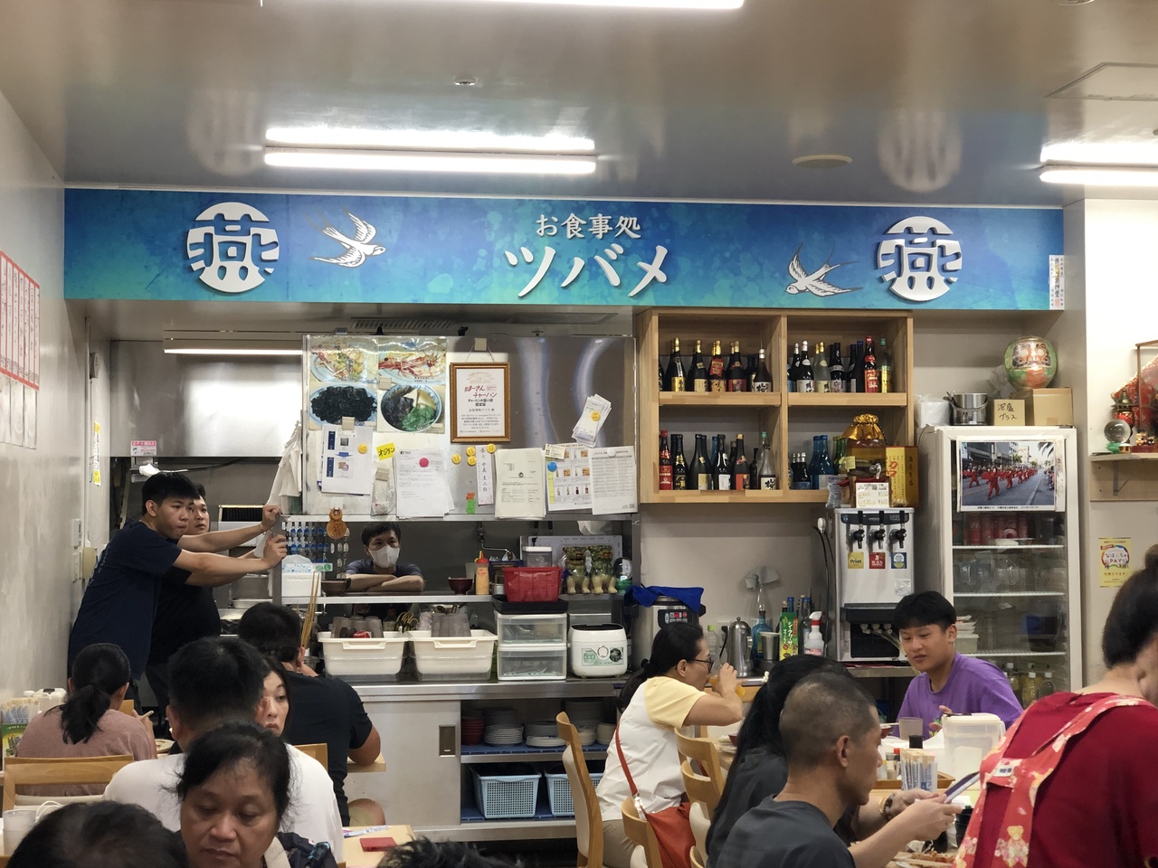 牧志公設市場の2階にあります。お昼時に行くと満席で、次々にお客さんが来ていました。外国人(中国人?)がとても多かったです。本場のフーチャンプルーが食べたかったので注文しましたが、周りは海鮮類を食べていて、せっかくなので私も海鮮にすればよかったと思いました。