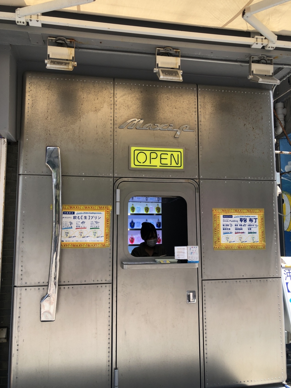国際通りにあります。マキシプリンです。飲むプリンのお店です。カジサックチャンネルで見て、行ってみました。店構えも斬新で、とても映える感じです。飲むプリン、私はコーヒー味にしましたが、まろやかでとても美味しかったです。
