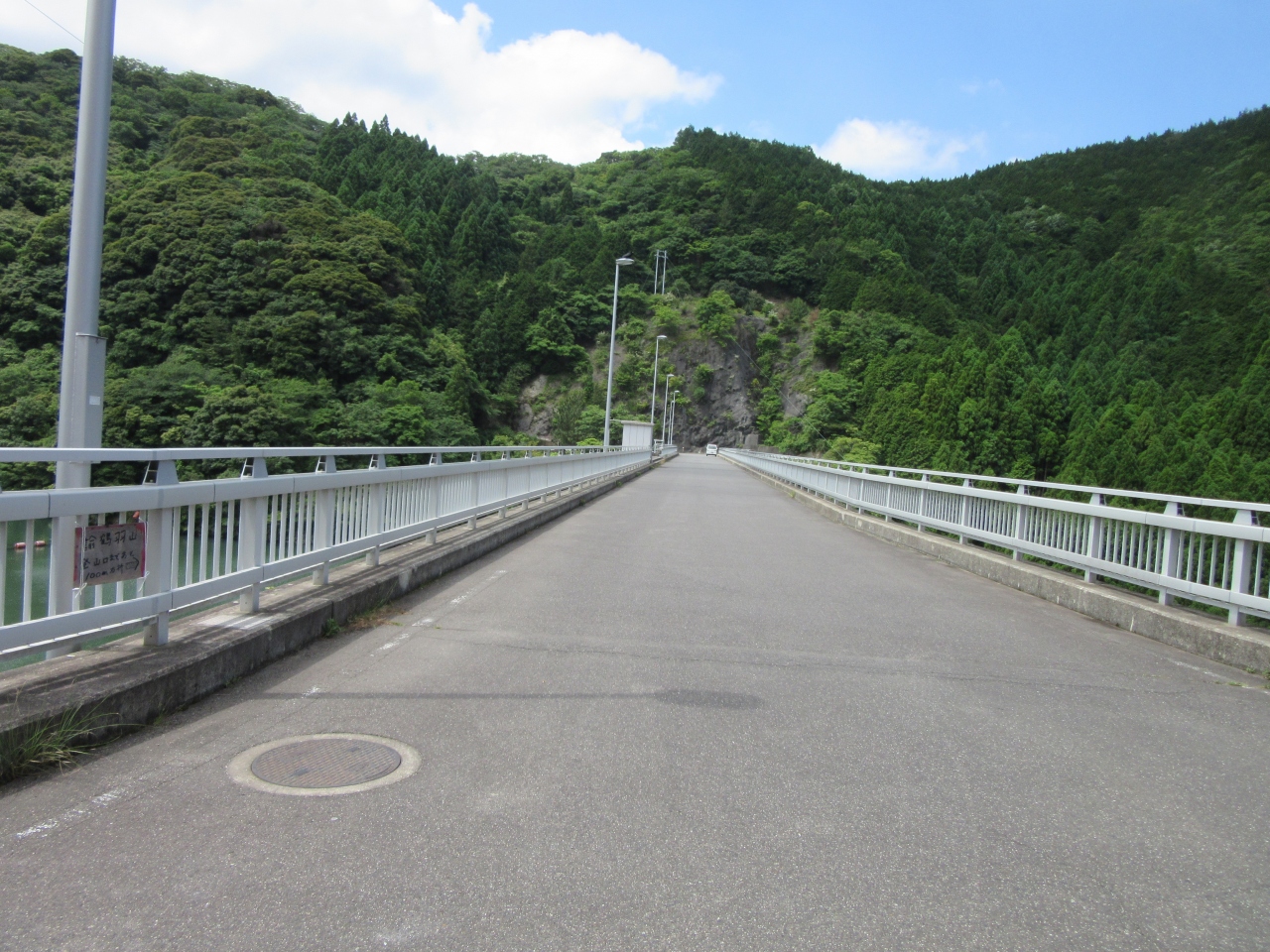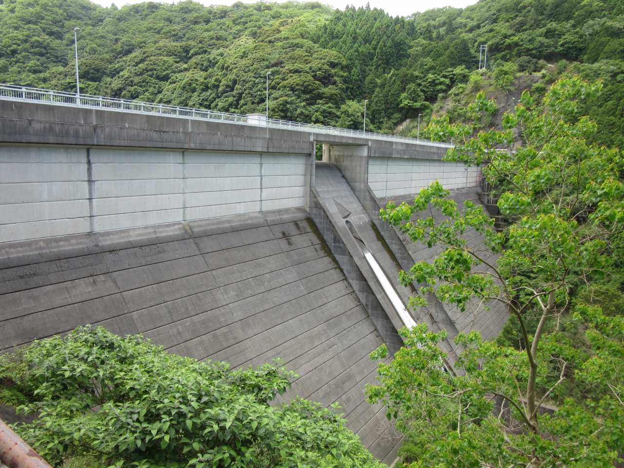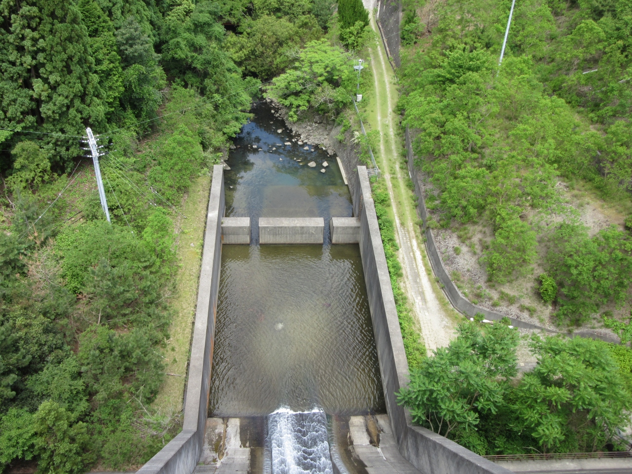 ダム天端は道路として開放されています。ダム下は大きな設備は無く放流水がダム下を抉らない様に減勢工がある程度でシンプルな作りです。