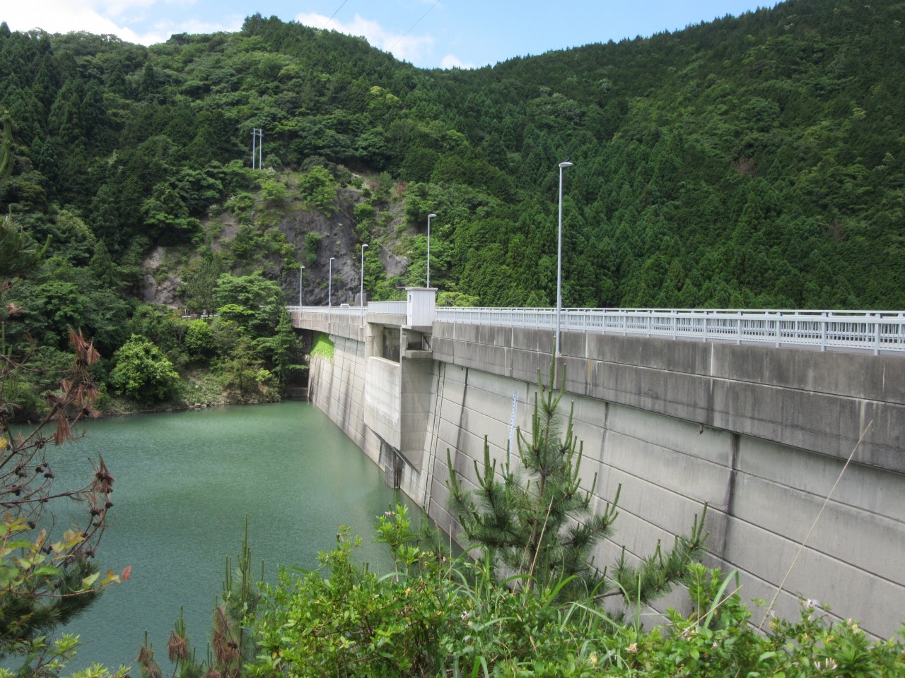 昭和50年竣工とそこそこ歴史あるダムで且つては天端にゲートもありましたが平成中期に改修工事を行い、天端にあったゲートを撤去し自然越流式に改造しました。