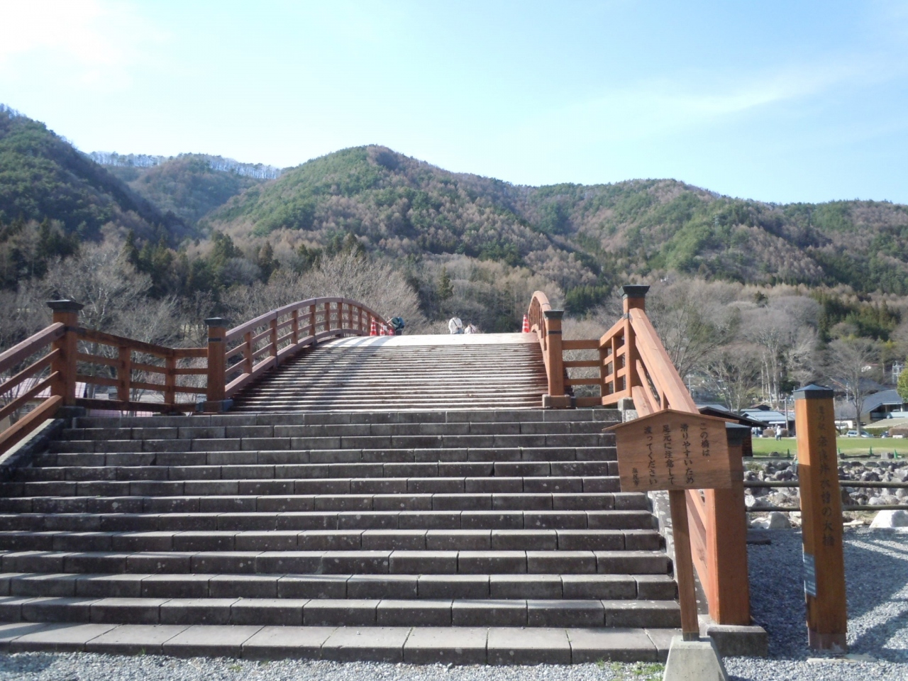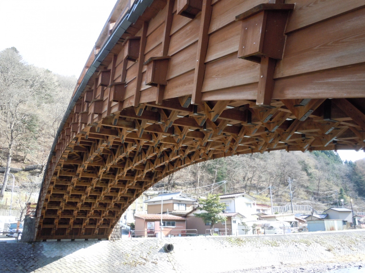 名古屋から北信州へ行く途中、車窓の左側に木造の大きな橋を発見。帰路で必ず立ち寄ろうと思い、この大橋に。専用の無料駐車場があって、とても便利です。橋の近くから見ると、木造の橋がきれいに湾曲して迫力があります。橋の真下から眺めると複雑な木組みがさらに魅力的。橋の近くには、広い公園やJR中央線の駅、奈良井宿の町並みもあります。時間があれば、じっくり見て買い物したり食事するのもおススメです。