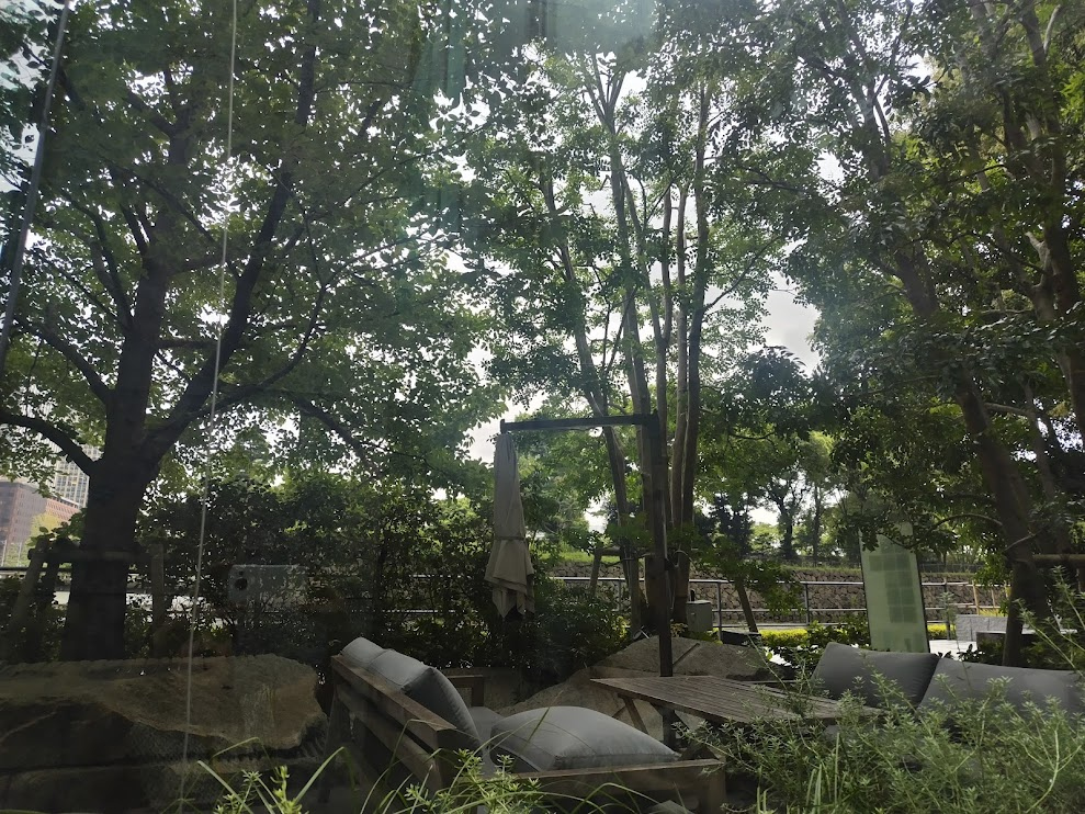 お堀に向かって都心とは思えない緑を眺めながら過ごす時間は