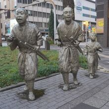 市内7カ所に偉人たちの像と解説板を設置した時標(ときしるべ)の1「イギリス艦、鹿児島湾に現る」は、加治屋町交差点の北東角。生麦事件の仇を取りに来たイギリス艦、薩英戦争の始まりですね。攘夷の実行という側面もあって、薩摩藩はやる気満々。薩摩藩が思いのほか善戦したことで、結果、英国との信頼関係が生まれる。そして、英国から先進技術を導入したことはその後の薩摩藩の軍備強化にもつながったことから、薩摩藩では成功体験という位置づけになりました。ただ、ここで戦争を成功体験としたことが明治以降の戦争拡大に影響を与えたことがなくはないような気がして、私としてはちょっと微妙な気持ちを持っています。