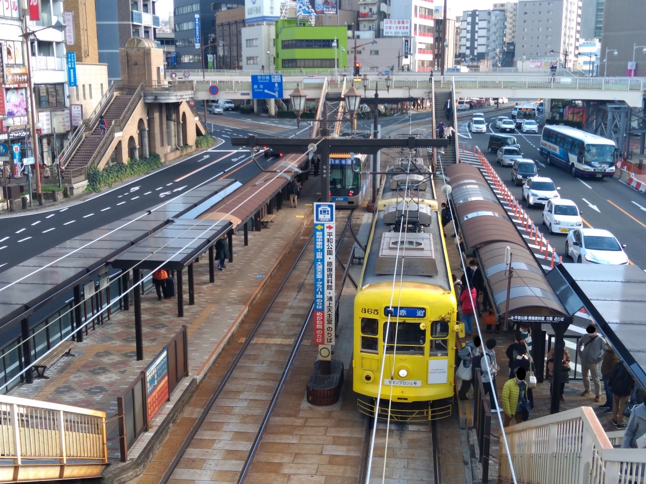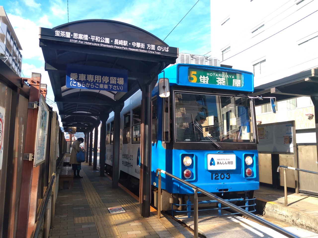 長崎市内をいろいろ歩くのに効率的に移動するのに便利なのは路面電車。1日乗り放題のチケットも紙やアプリで販売されているのでお値打ちに乗車することができる。長崎駅からグラバー園やめがね橋などアクセスでき本数も多くて便利だ。ただ便によっては修学旅行の自由行動?の学生さんが多く乗り込んで混雑していたこともあったが、コロナ禍には殆ど人が居ない中で町歩きをしていたので賑やかなのは他人事ながら嬉しくもあった。