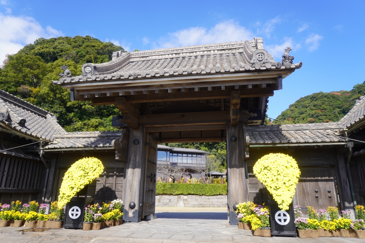 仙巌園の正門は、出入り口としては使われていないので、ちょっと気が付きにくいかも。華やかな錫門に至るまだ手前のところ。豪壮な構えなのですが、門の正面に回ってみないとその豪壮さは分かりません。お見逃しないように!
