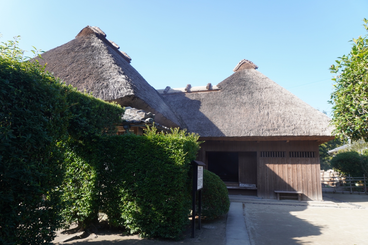 旧高城家住宅は、居住用のオモテと台所のあるナカエを間に小棟を挟んでつなげる知覧型二ツ屋。明治以前の武家屋敷であり、おとこ玄関とおんな玄関を備えているのが大きな特徴だとか。ただ、玄関と言っても縁側みたいなところに踏み台の石を置いただけ。簡素なものです。