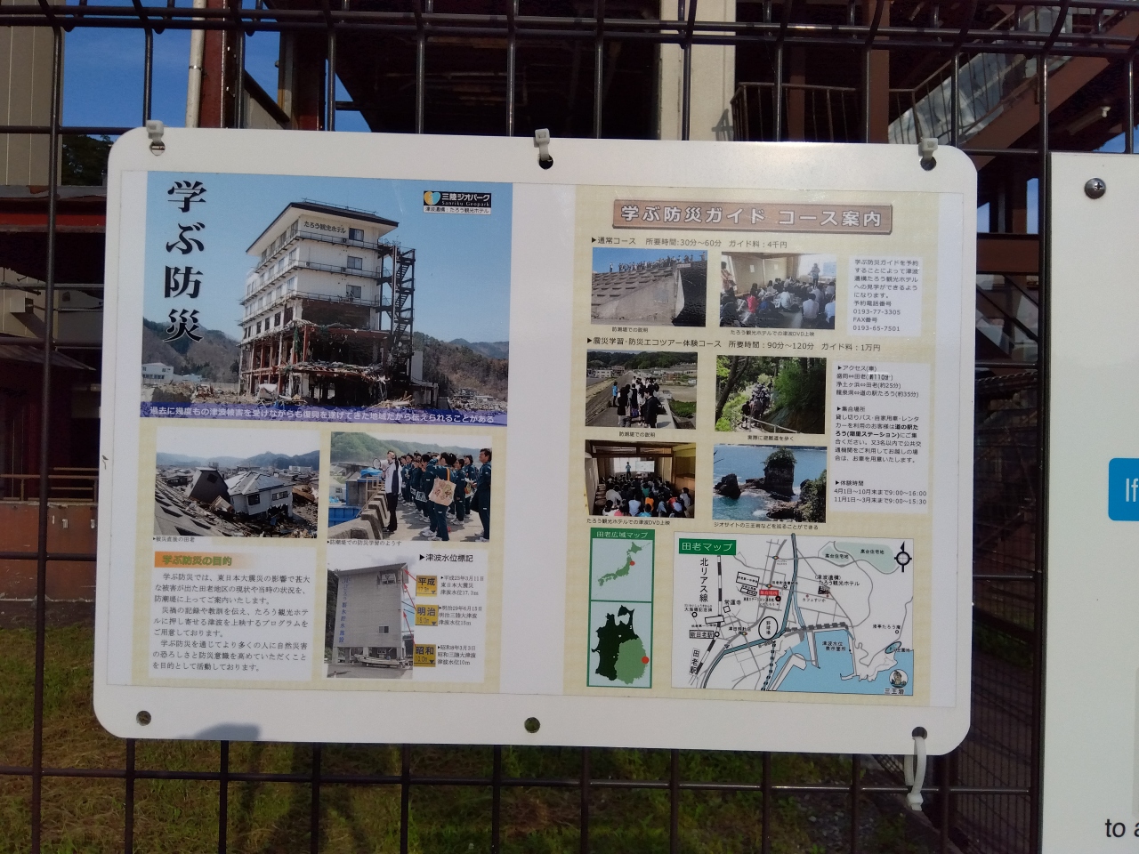 「学ぶ防災ガイド」では、ホテル内部の見学と津波DVDの上映が行われています。