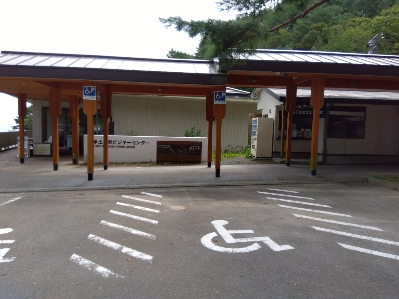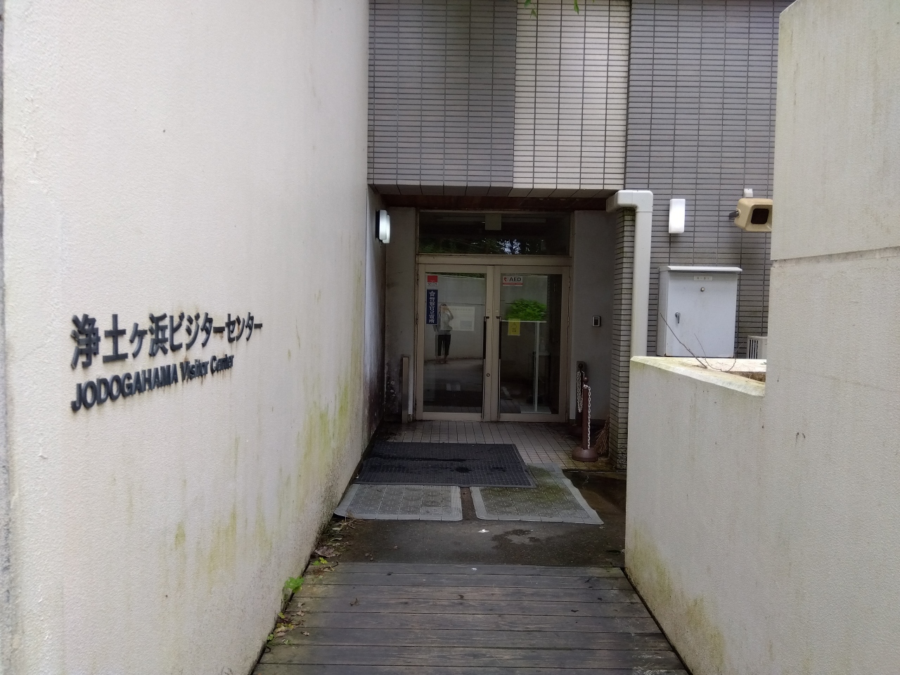 駐車場やバス停がある入口は建物の3階、地下1階まで降りて外に出ると浄土ヶ浜に続く遊歩道がありました。