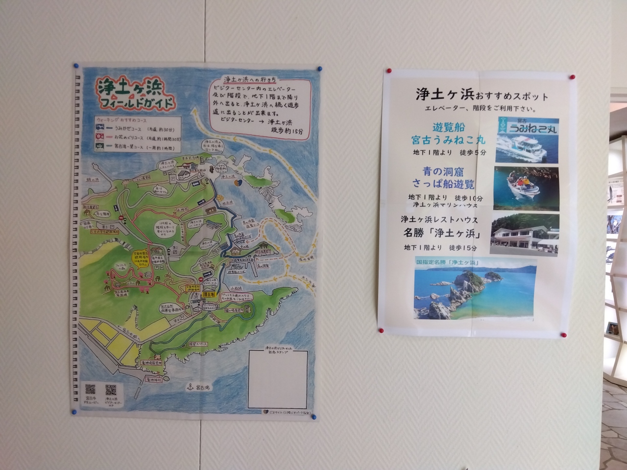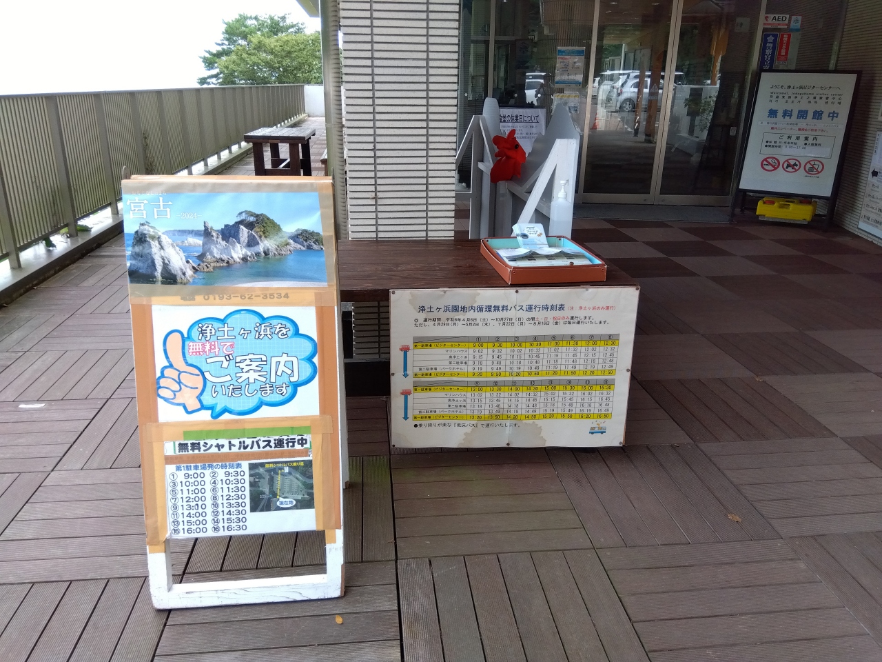 入口付近にいたボランティアガイドのような人に「さっぱ船」乗り場への行き方を聞いて、浄土ヶ浜のマップをもらい、少しだけ施設内を見学しました。