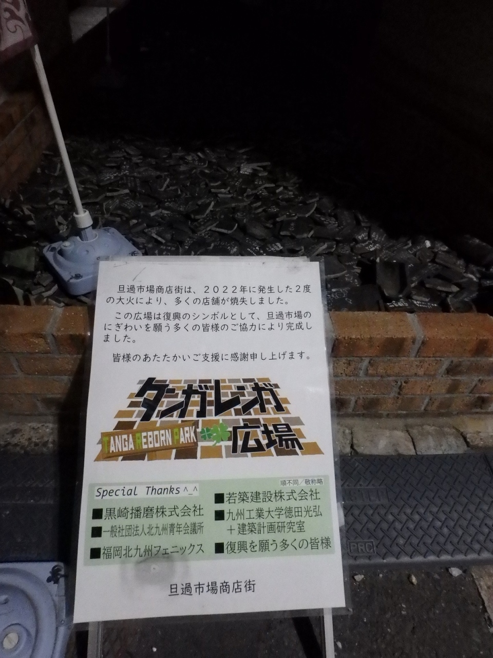 小倉駅での乗換え時間を使ってモノレールに乗車。旦過駅で下車した後にこの旦過市場を歩いた。昔からあるアーケード商店街で雰囲気がかなり良さそう。ただ時刻は21時を回っていたので営業しているお店はほとんどなく町並みを楽しむだけになってしまったのは残念だった。次来るときは日中に来てみたい。