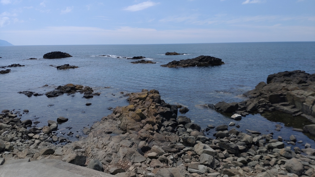 留萌の観光地立ち寄りは初めてです。夕陽が綺麗だから黄金岬と思ってましたが、ニシンを見張る岬で、ニシンが夕陽に光る様子が黄金色だからその名がついたそうです。柱状節理もはっきり見られる海岸では、磯蟹釣りも出来ます。
