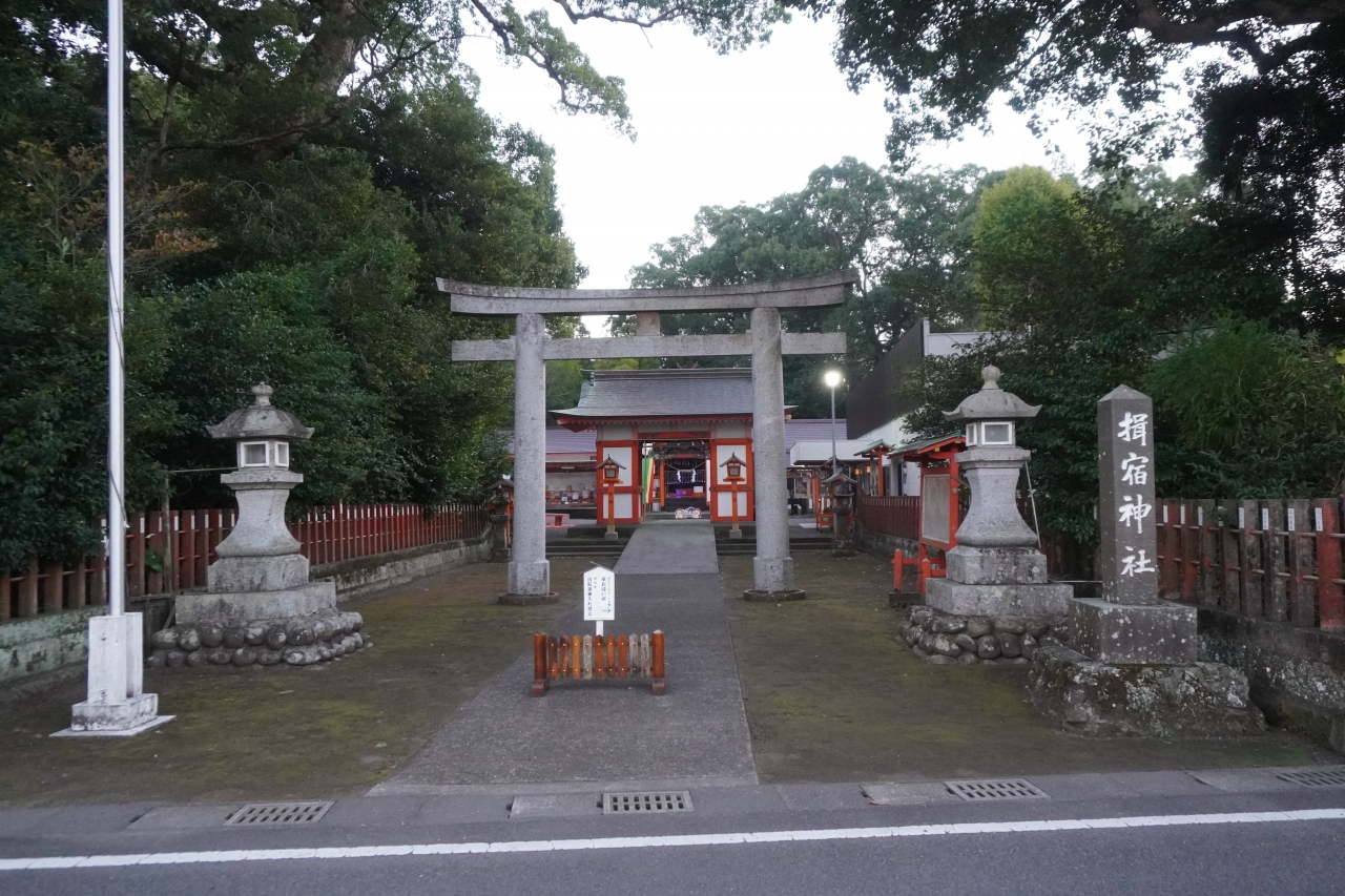 揖宿神社は、慶雲3年(706年)に創建された葛城宮が始まり。天智天皇の遺品を奉じたものだったとか。社殿は、弘化4年(1847年)島津斉彬の父である島津斉興によって建てられたもの。また、石造の鳥居は名工、岩永三五郎の作。やけに整った形です。