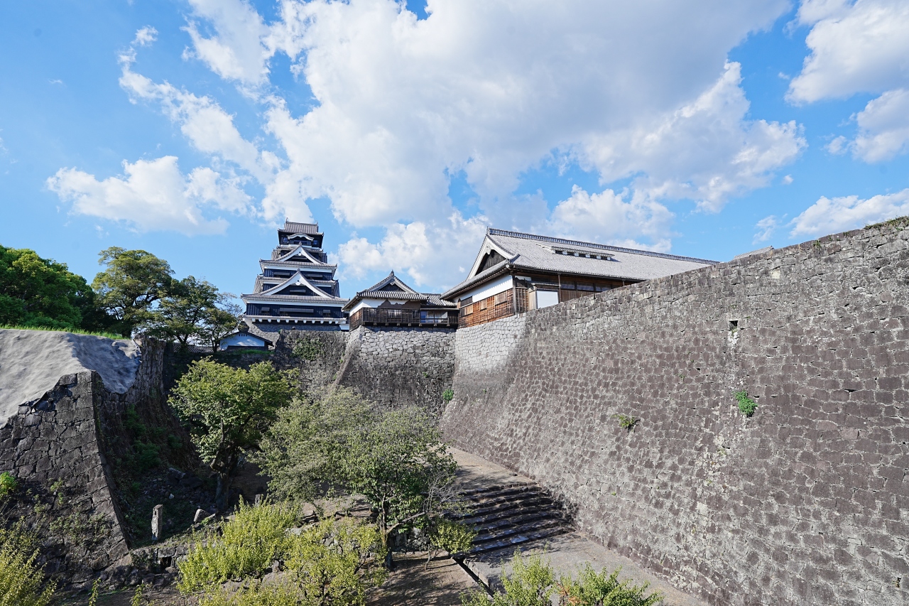 途中見る石垣は地震で崩れた場所を残していたり、危ない箇所にはコンクリートやネットで補強していましたので、地震の強さを伝える意味でそうしてあると感じました。