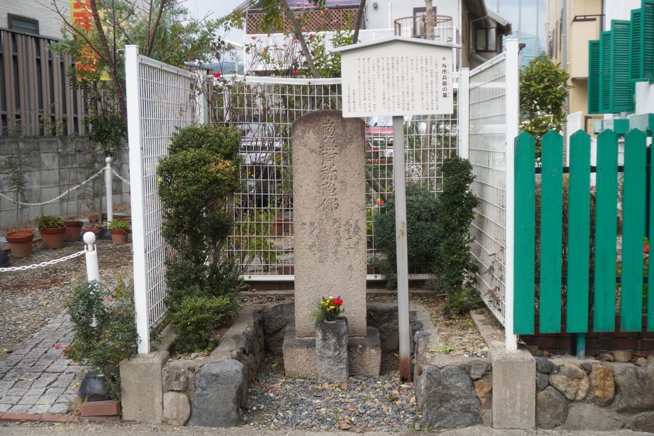 ちなみに、与市兵衛は仮名手本忠臣蔵に登場する人物。娘婿の早野勘平を討ち入りに参加させる費用捻出のため、娘を身売りさせるのですが、山崎に戻る途中、山賊に襲われ命を落としたというもの。碑には南無阿弥陀仏と彫られていて、墓とする方が納得感があったのではないかと思います。