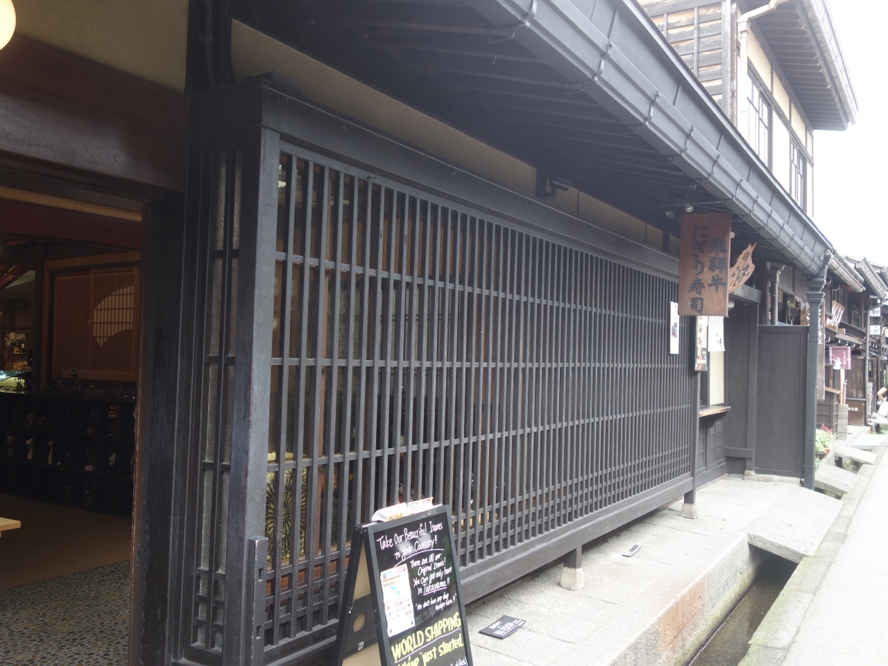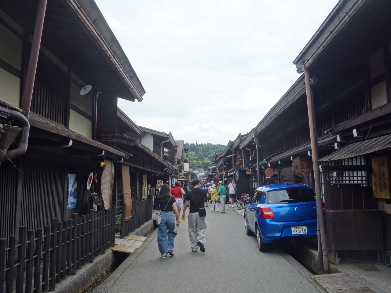 高山の古い町並みは上三之町が中心です。二之町や一之町もありますが、やはり中心は上三之町です。道幅もそれほど広くなく、通常は歩行者天国です。土産物店や食べどころ(イートインや路上食べ歩き食品をうるところ)が並んでいます。がお黒人観光客もとてもおおい。まるで外国にきたみたいです。専用駐車場はありませんので、ちかくのコインパーキングや、民間・市営にの駐車場をつかうことになります。