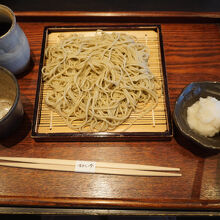 いただいたのは、辛味おろしそば。越前そばだと定番なんですが、ここのそばはもう少し柔らかいので、キレという意味では多少落ちるかな。常連さんらしき人がせいろの大盛を頼んでいましたが、辛味おろしそばよりそっちの方がこの店のそばの味がよく分かったかも。ほか、蕎麦湯でいただいたら、最後に汁の抜群のうまさに気が付いたり。。なかなかのレベルであることは間違いないのですが、一回ではこの店の価値は分からなかったような気がします。