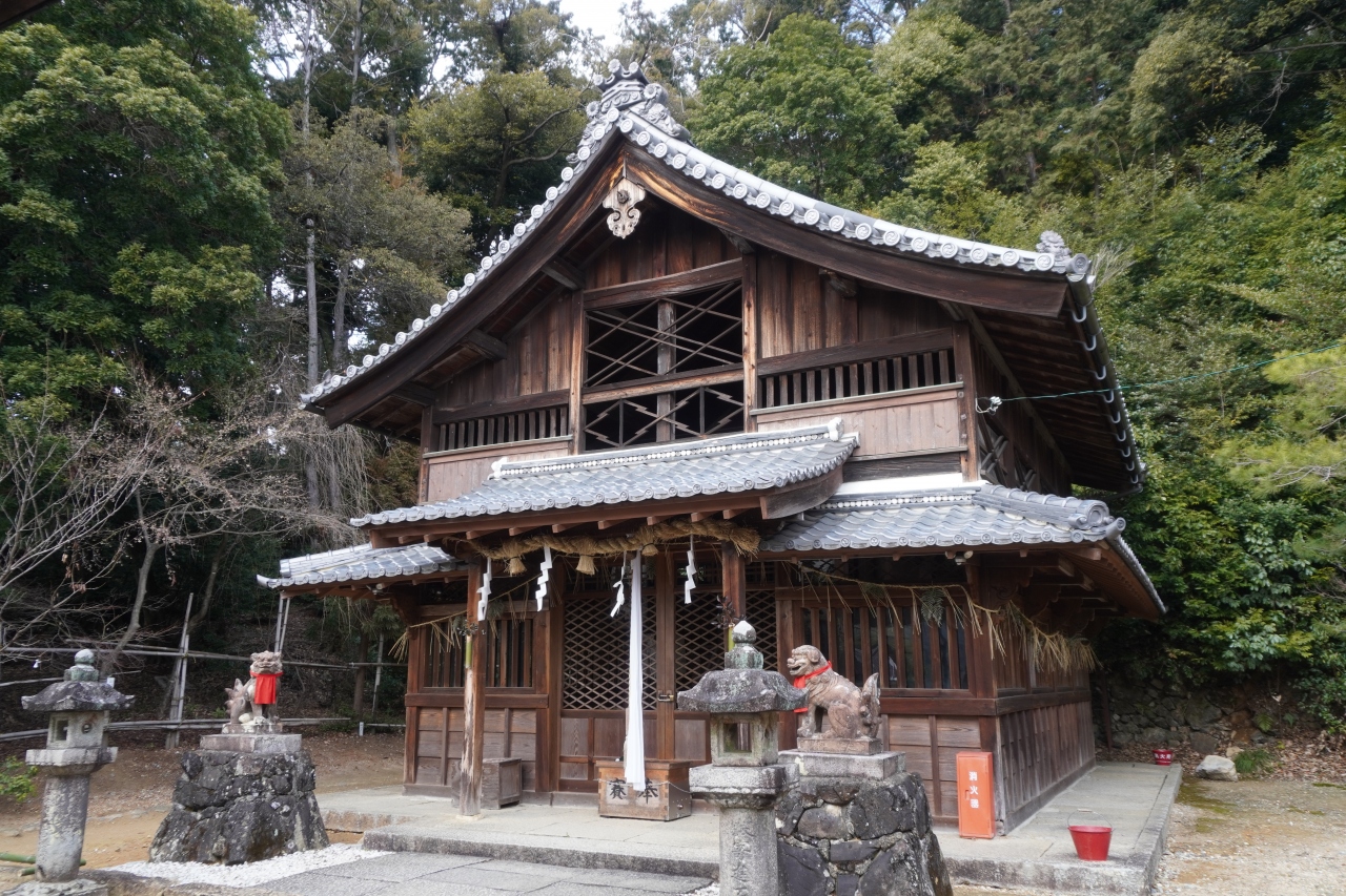 走田神社は、延喜式に記載されていた式内社のひとつ。春日の四柱神を祀り、かつては、寂照院の鎮守社。寂照院の裏手をどんどん上った山の上にあって、境内からは山崎の戦いの古戦場を一望するというなかなかいい眺め。妻入りの社殿が印象的な意匠です。